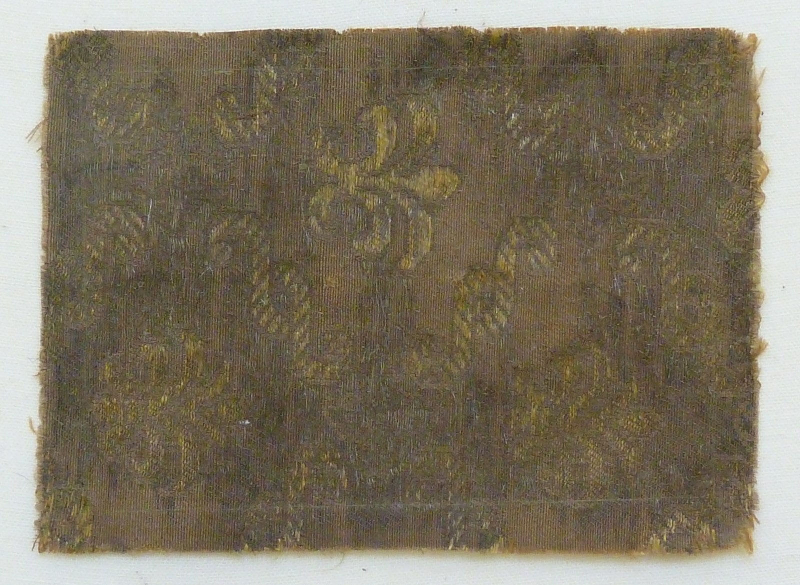 Bruin fond met geel patroon van lelies in ruitvormig geplaatste slingers