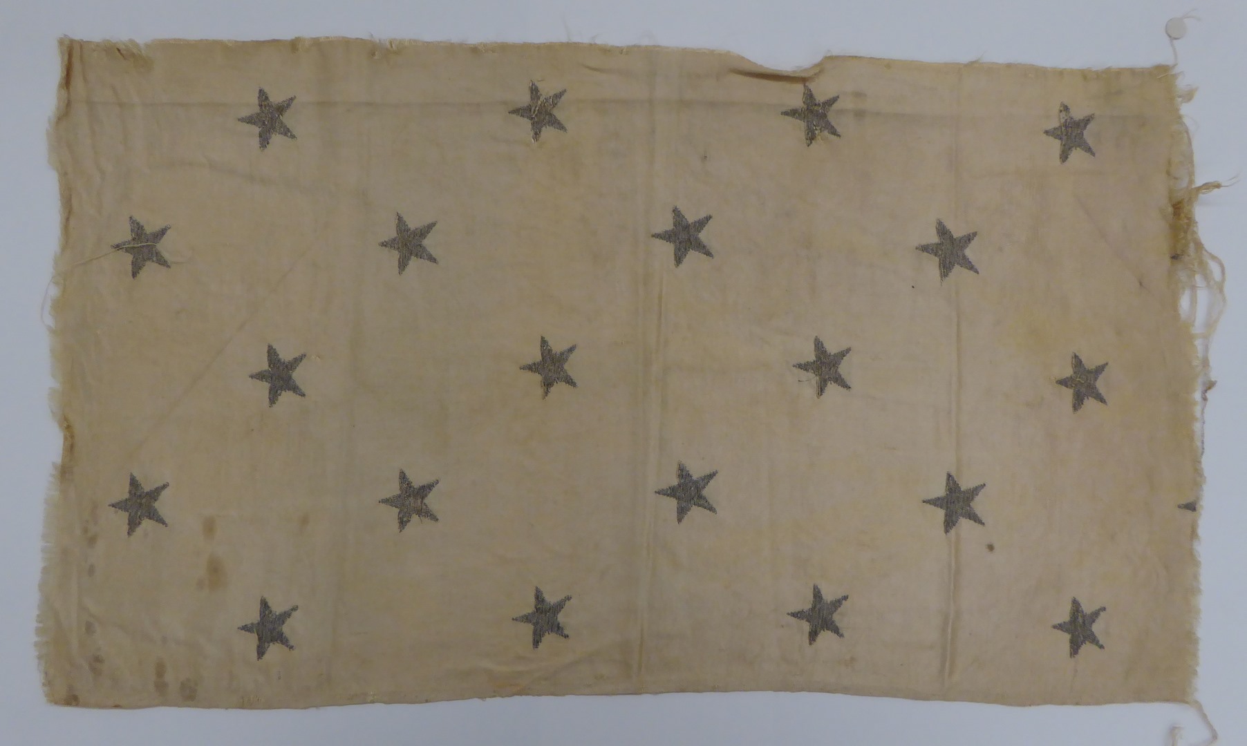 Wit brochéweefsel met patroon van vijfpuntige sterren in ruitpatroon