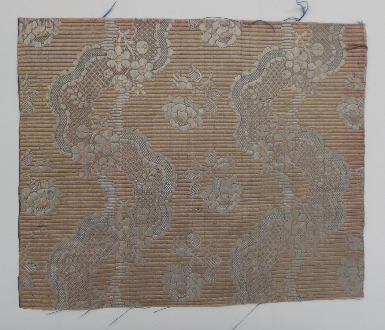 Rose cannelé simpleté met golvende banen met bloemenslingers versierd met kantpatroon