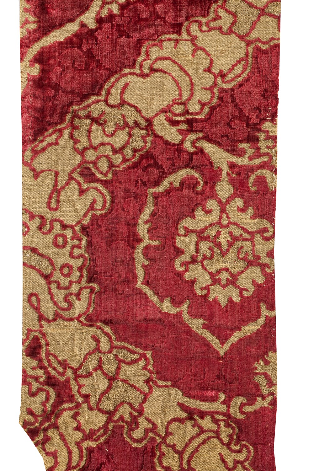 Geschoren fluweelbrokaat met gouden takken, effen, bouclé, in spitsovaal verbonden door festoen