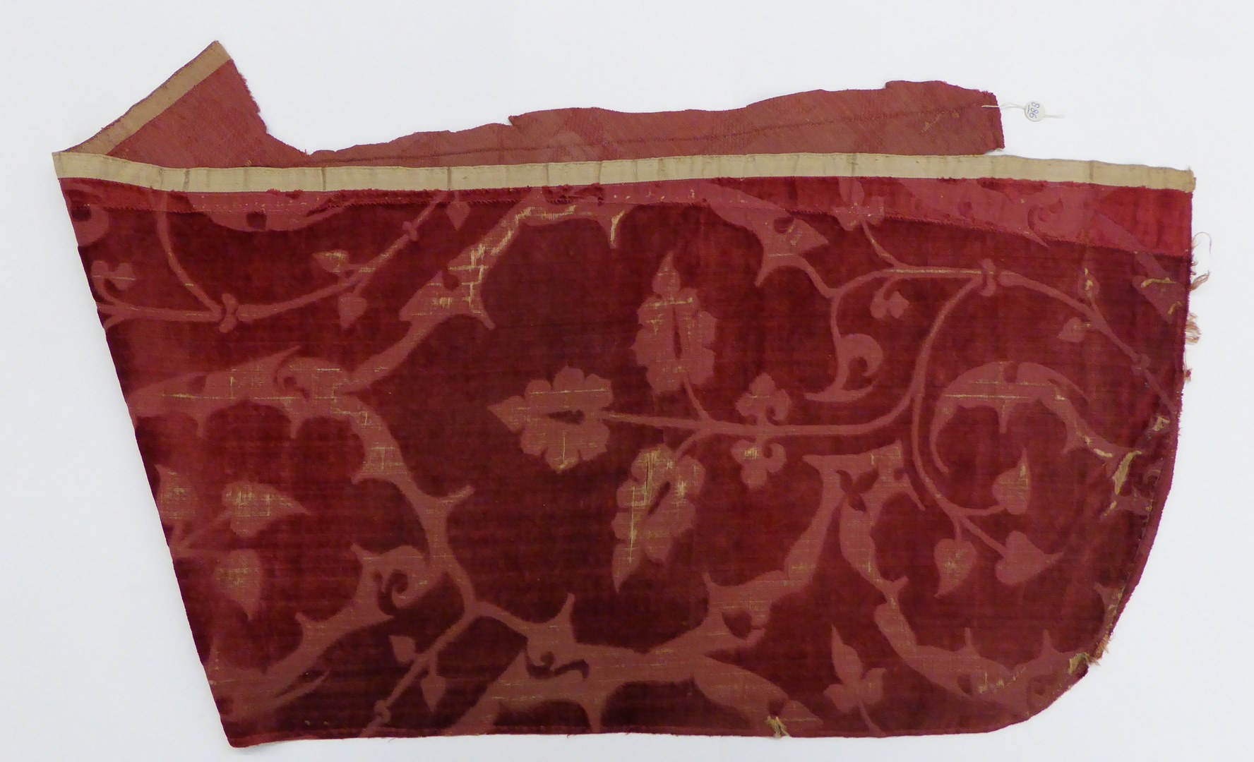 Rood fluweel, met motief van bladeren en rozetten