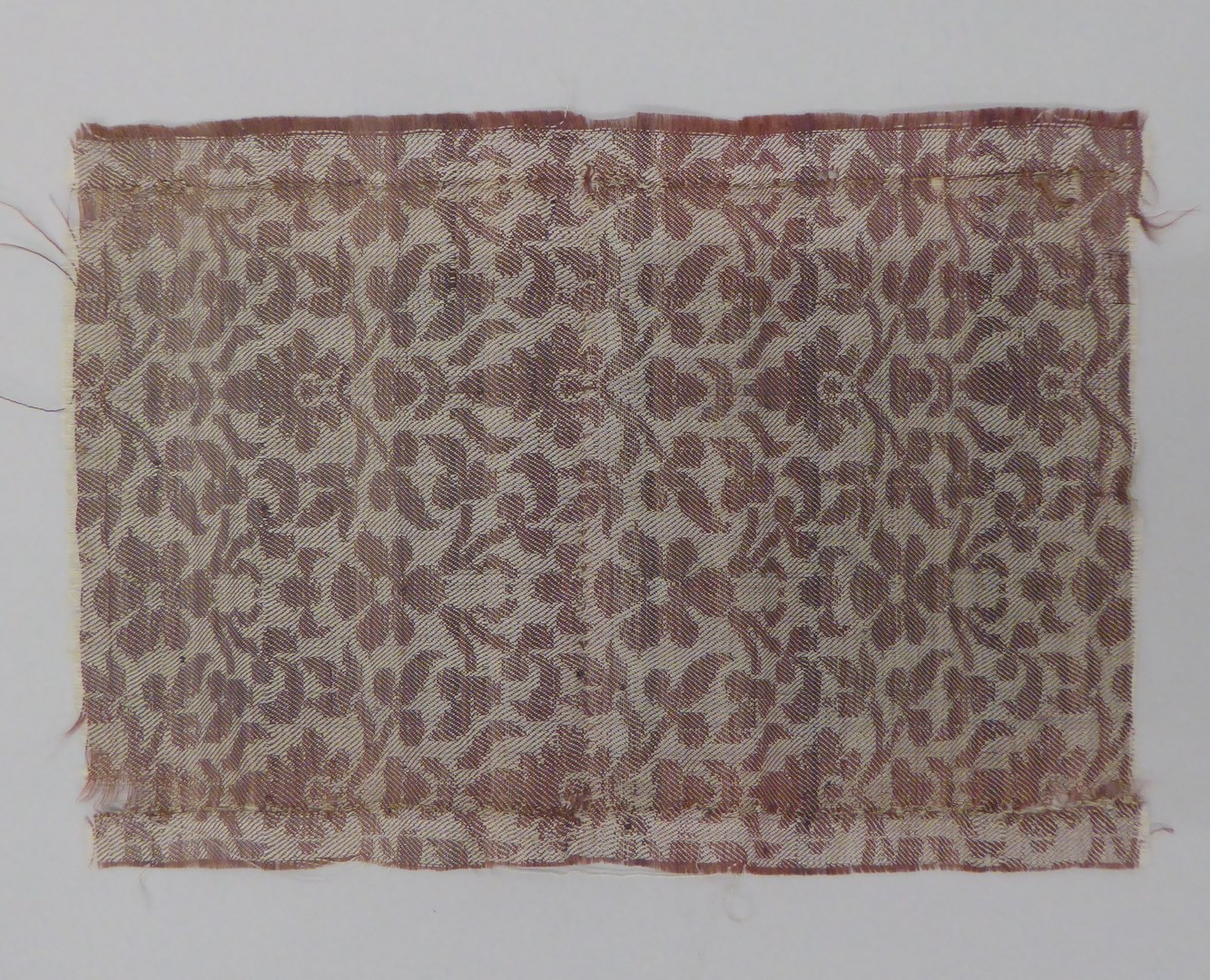 Grijswit zijdeweefsel met kleine lila granaatappels