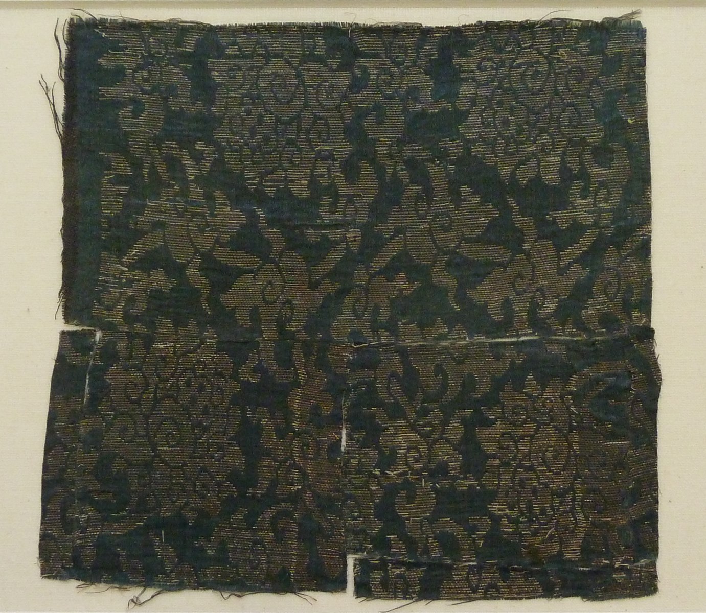 Blauwgrijs brochéweefsel met papierzilverdraad patroon van lotusbloemen