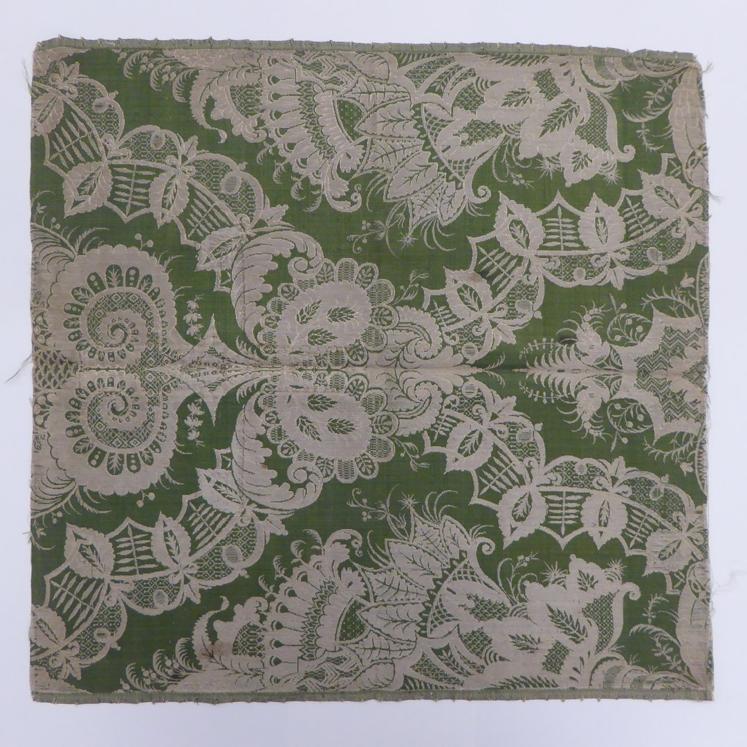 Groene lampas, liseré, broché, met bloemranken in kantpatroon