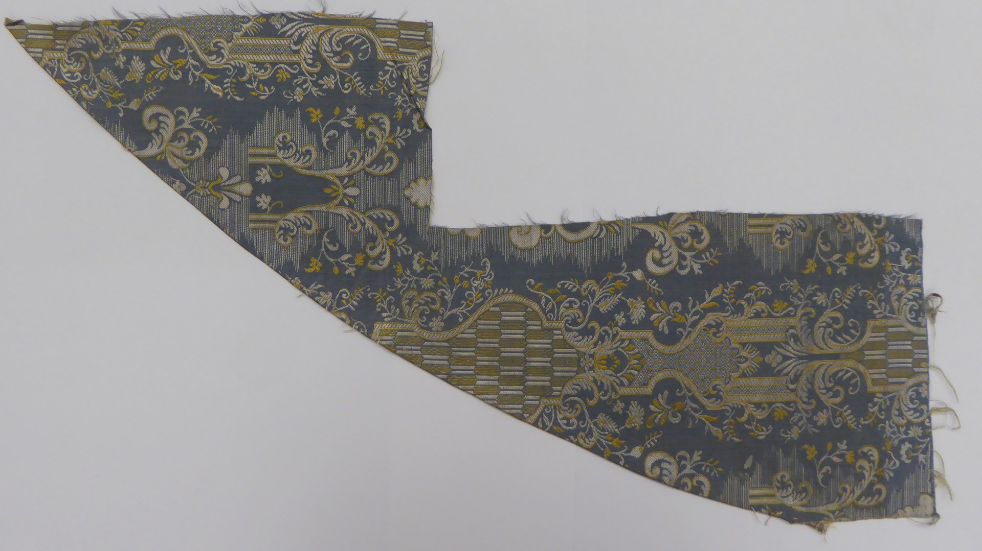 Grijsblauwe lampas met geel-witte ranken