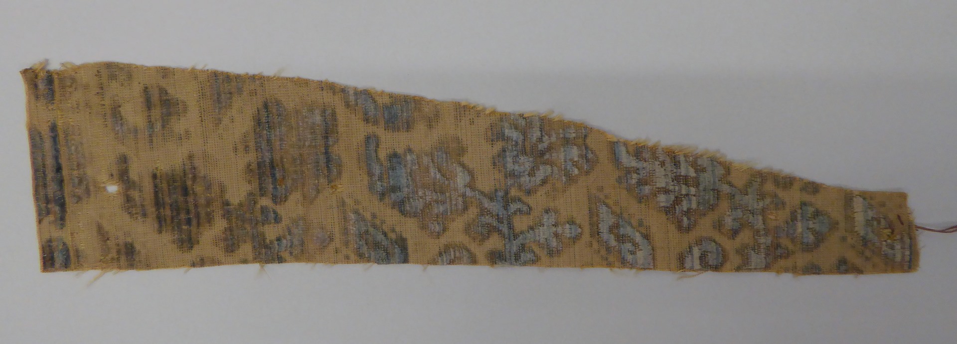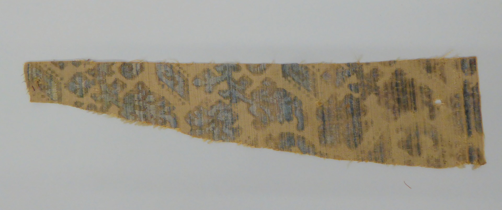 Goudkleurig ciselé fluweel met blauw strooimotief