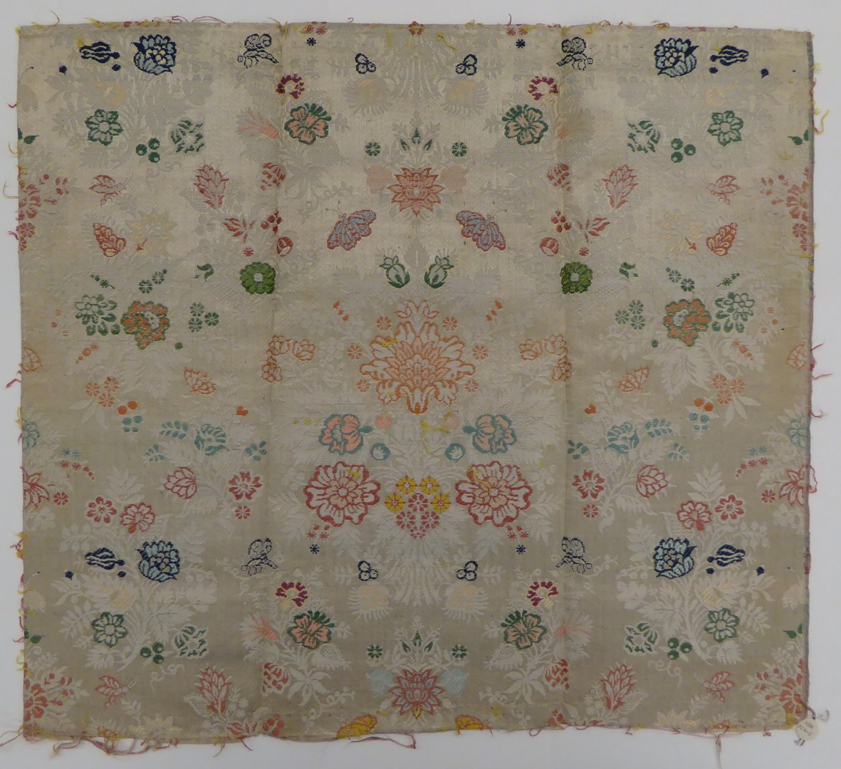 Crème lampas met boeketten en veelkleurig bloempatroon