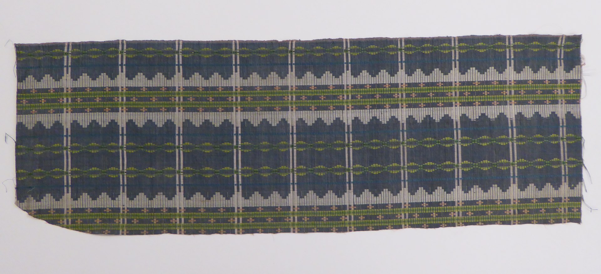 Blauwe halfzijde met groene, blauwe en witte banen