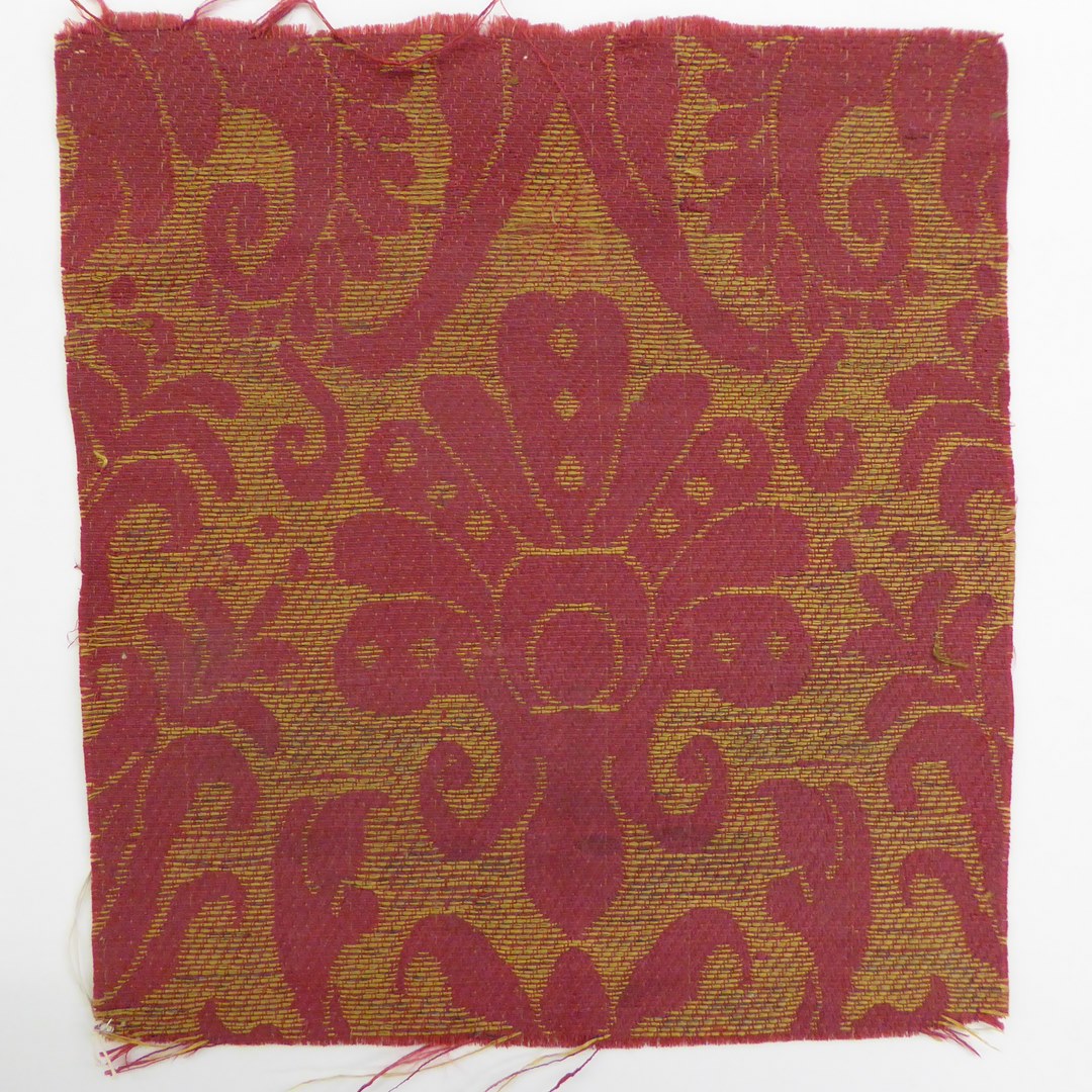 Rood dubbelweefsel met gouden granaatappels met ranken
