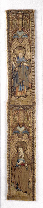 Deze kolom is van dezelfde dalmatiek afkomstig als ABM t2108a. Ook hier zijn boven elkaar twee heiligen afgebeeld in een architecturale ambiance, die identiek is aan die op het bijbehorende aurifries. Bovenaan een gebaarde St. Antonius abt (ca.251-356),ook wel Antonius de heremiet (kluizenaar) genoemd. Zijn attriburen zijn de staf, die hij in de linkerhand houdt, ...