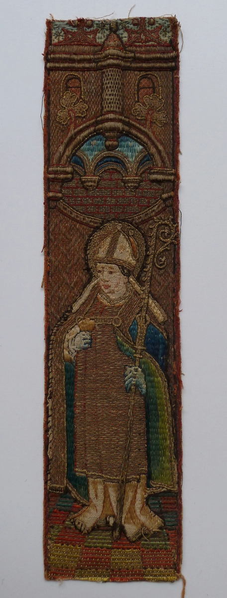 Op het aurifriesfragment wordt in eenzelfde architecturale ambiance als ABM t2121a staande op een tegelvloertje de kerkvader Augustinus afgebeeld. Hij is gekleed als bisschop in een albe, dalmatiek en koormantel, die met een dwarsband wordt gesloten. Hij draagt een mijter op het hoofd. In de gehandschoende linkerhand houdt hij zijn attribuut, het hart, in de ...