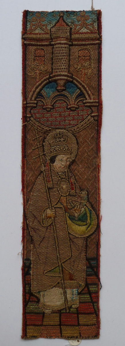 Op het borduurwerk wordt in eenzelfde architecturale ambiance als ABM t2121a staande op een tegelvloertje paus Cornelius afgebeeld. Hij gaat gekleed in een albe met rand en parura, een koormantel, die met een agrafe aan de voorkant wordt gesloten, een stola, een manipel en handschoenen. Op het hoofd draagt hij een tiara, in de rechterhand ...