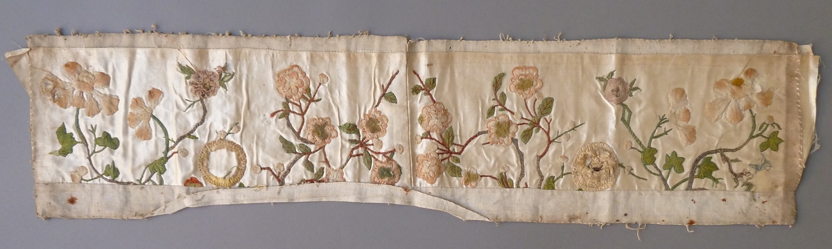 Altaarrand geborduurd met bloemslingers met geappliqueerde en geschilderde bloemen