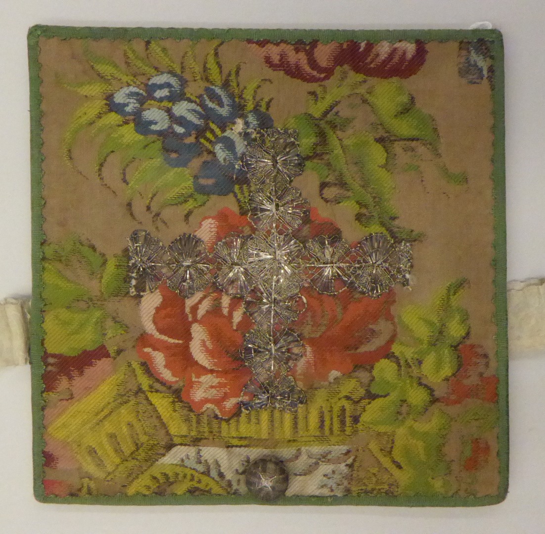 Beurs van gekleurde zijde met ingeweven bloempatroon