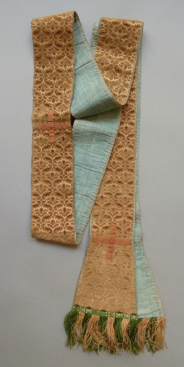 Bruine stola met gesneden patroon van gestyleerde fleurs-de-lys in ruitvormige krans van rinceaux