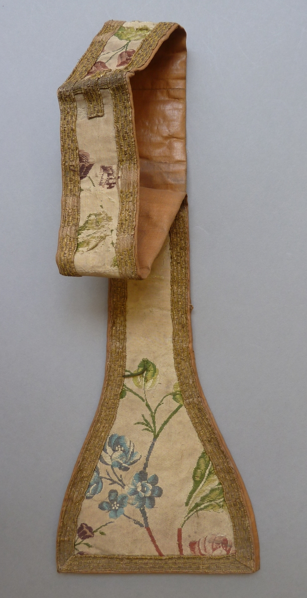 Witte manipel van gebloemde zijde afgezet met goudgalon
