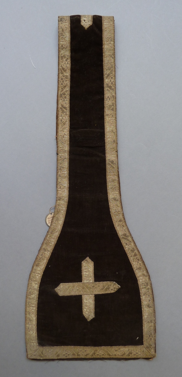 Zwarte (bruine) manipel met kruisjes en rand van zilvergalon