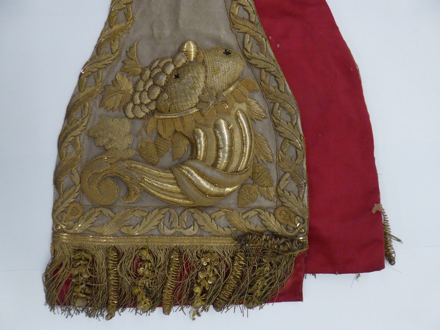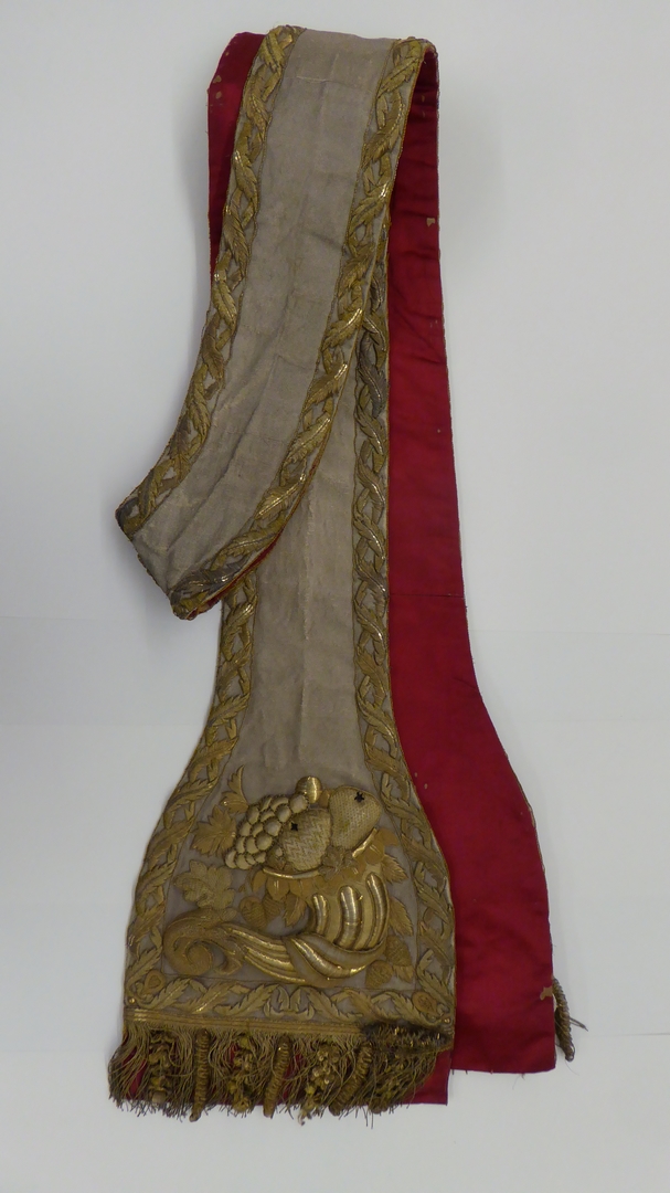 Witte stola met bloem- en bladslingers van gouddraad, aan uiteinden hoorn des overvloeds