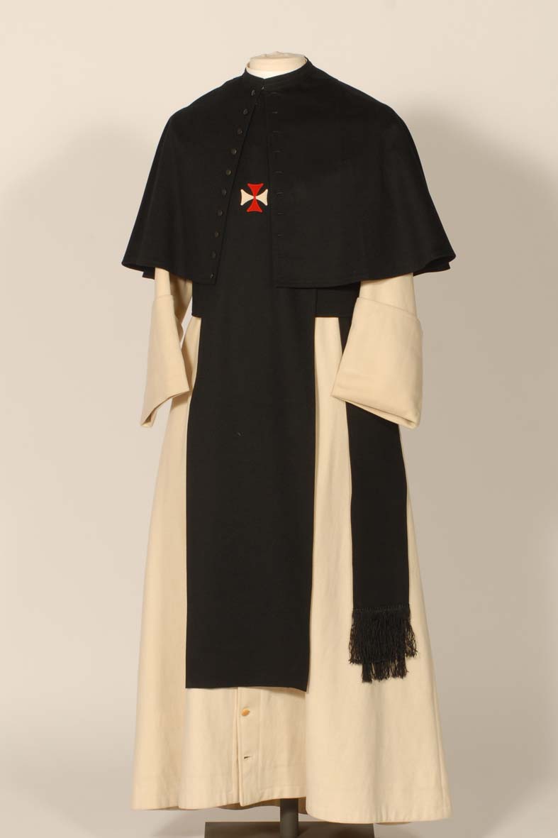 Priesterkleding Kruisheren: zwarte cingel met lap eraan bevestigd