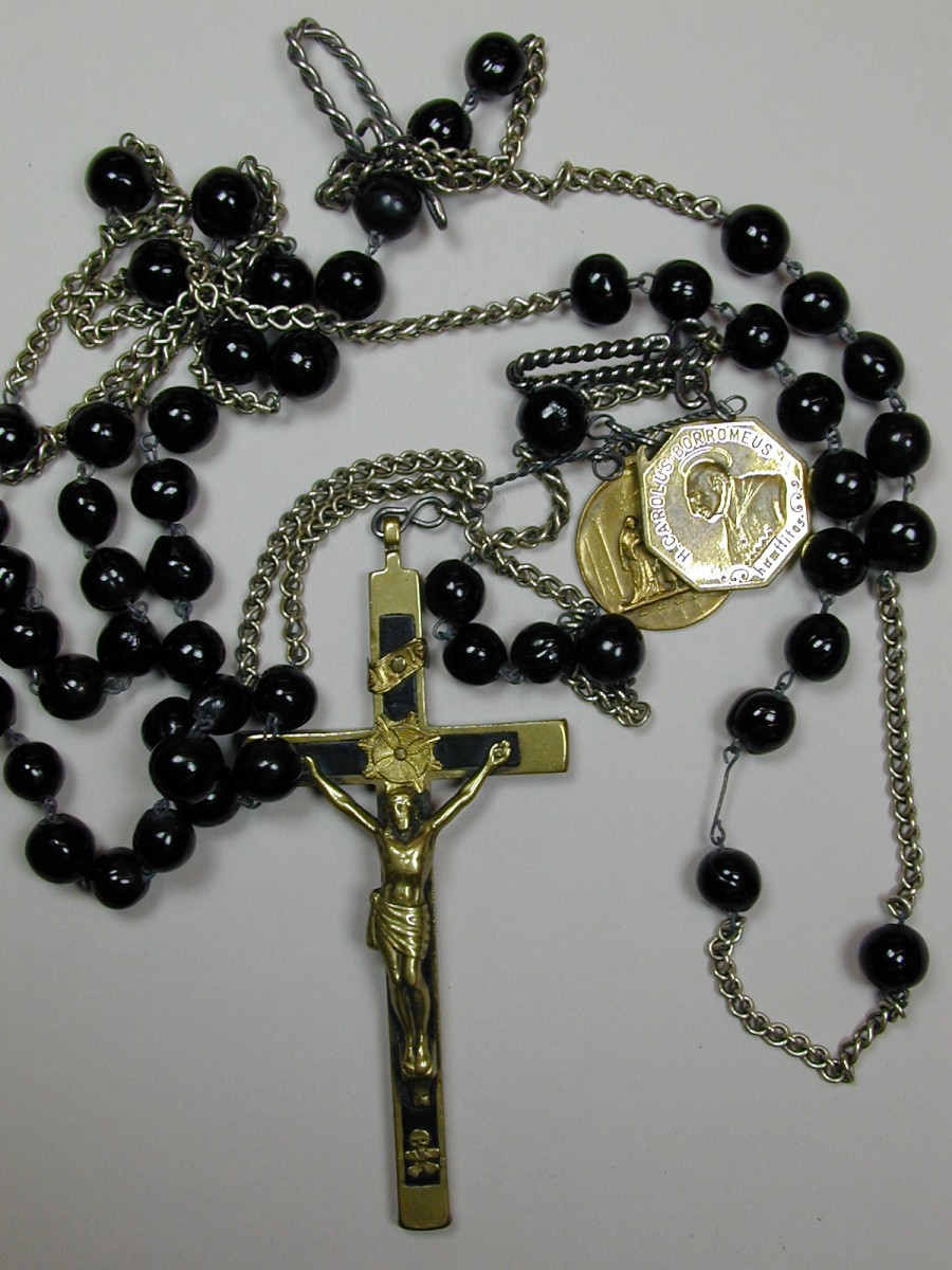 Ordekleding Liefdezusters van de H. Carolus Borromeus: rozenkrans met kruisbeeld en medailles
