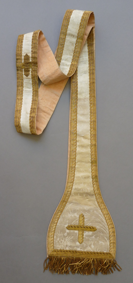 Witte stola met ingeweven bloemfiguren, goudgalon en goudfranje