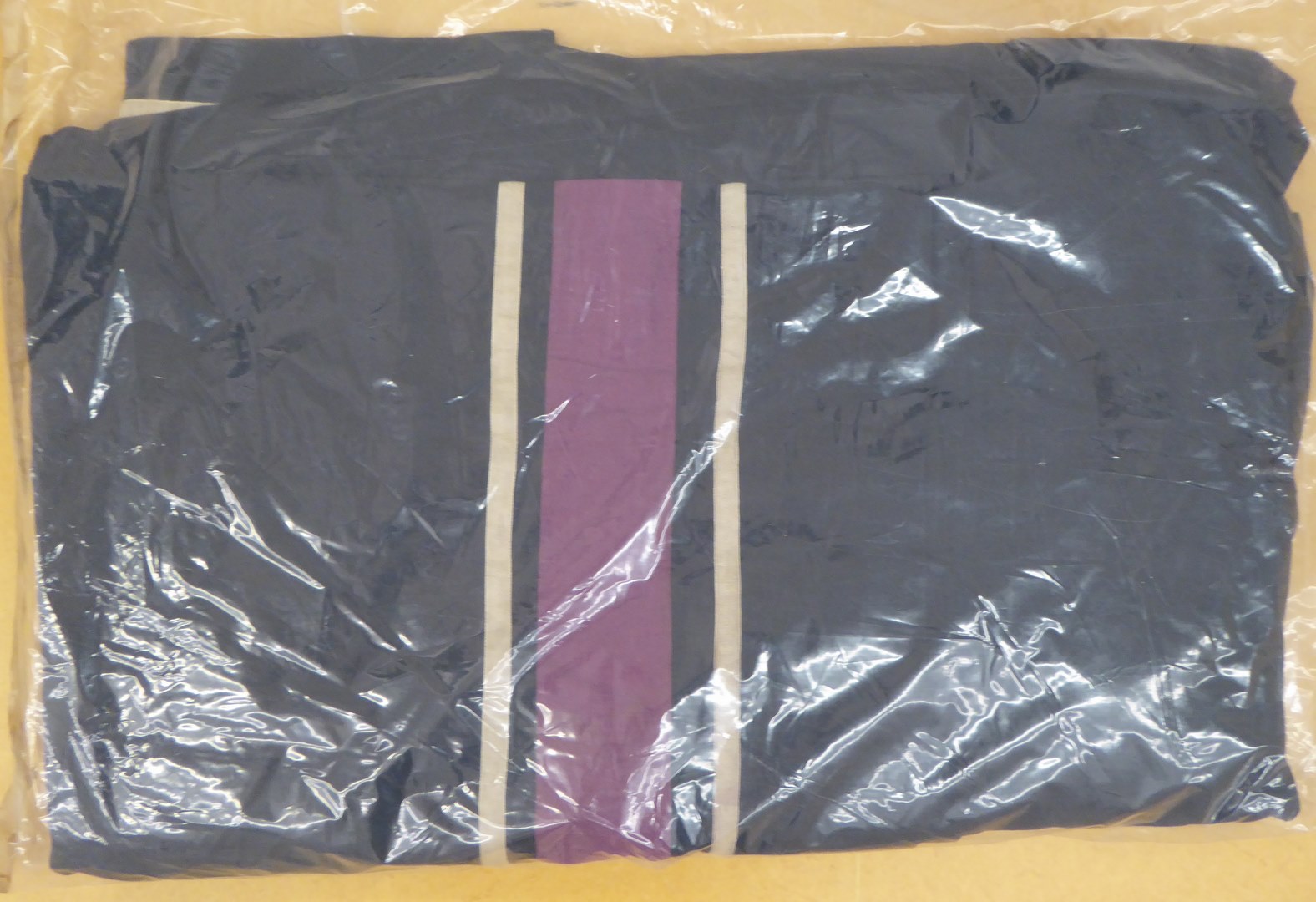 Zwarte rouwbekleding bestaande uit twee stroken T-vormig aan elkaar gezet, afgezet met galon