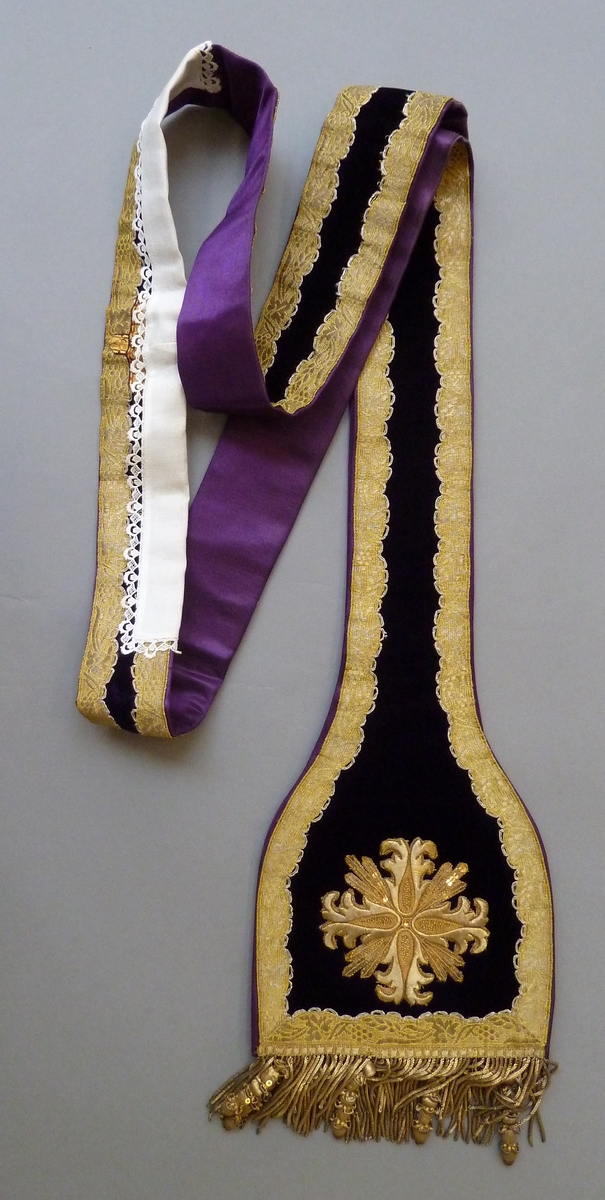 Paarse stola met leliekruisen van gehoogd gouddraad