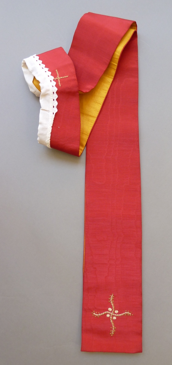 Rode stola met geborduurde kruisjes