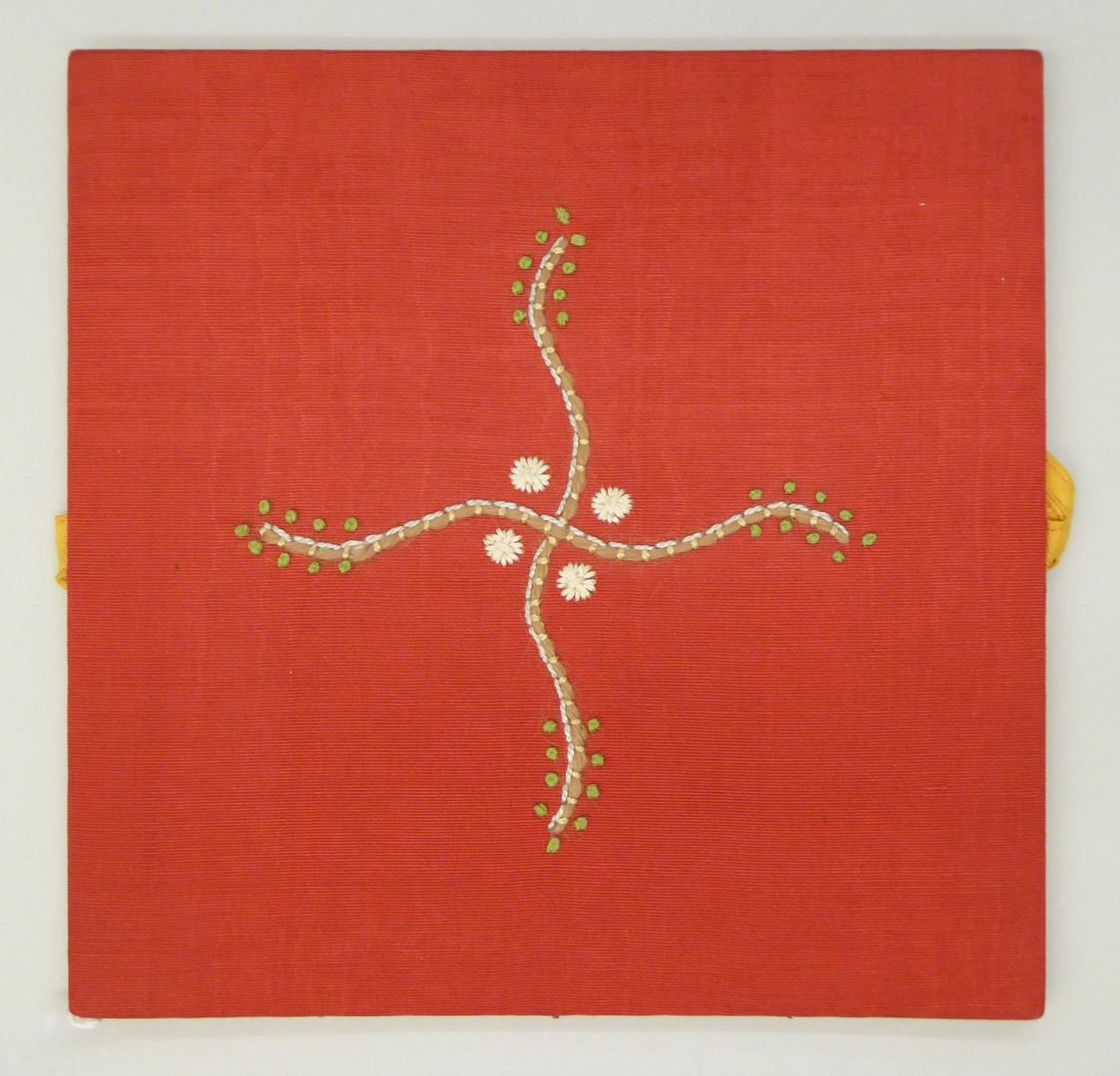 Rode beurs met geborduurd golvend kruis