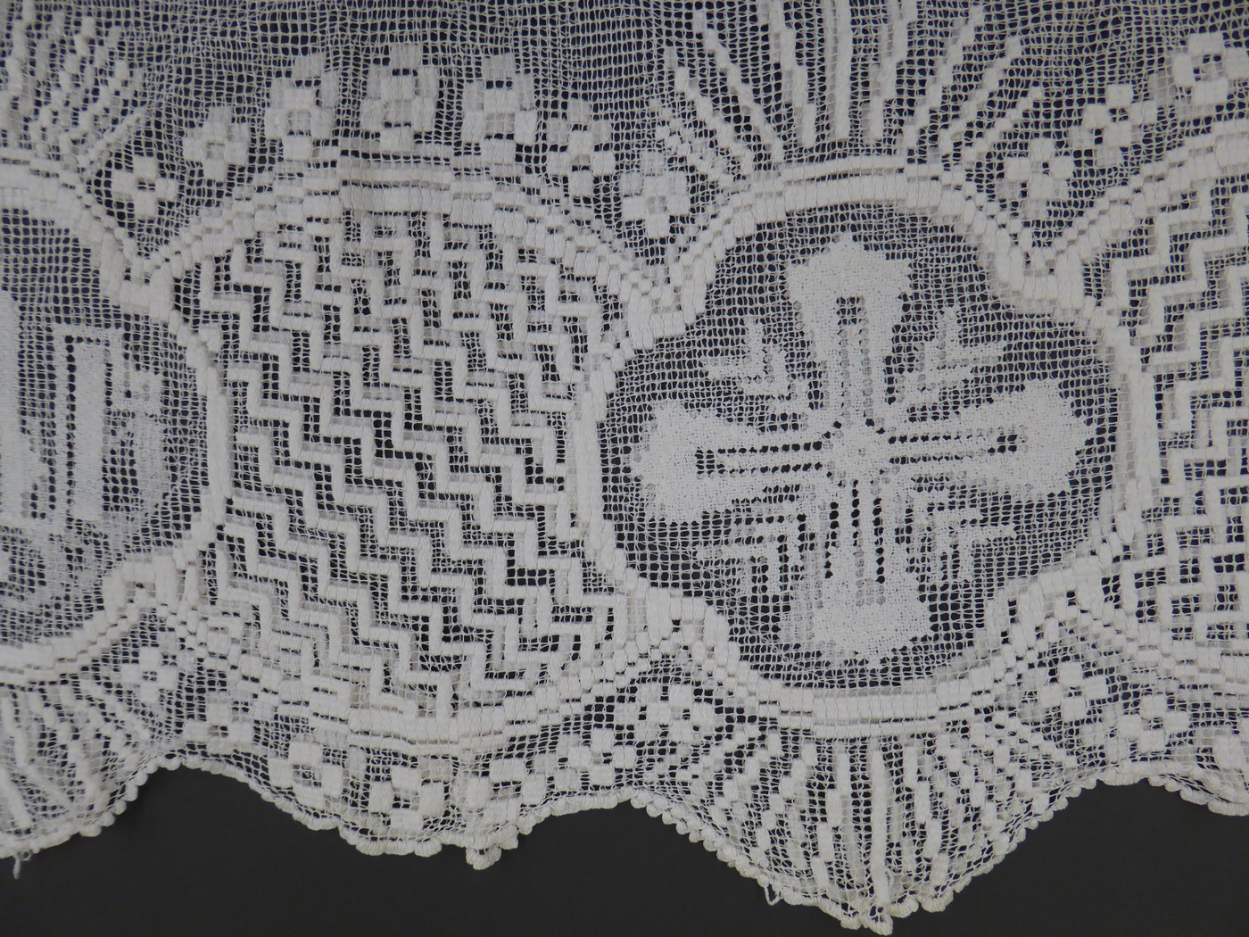 Albestrook van doorgestopt filetwerk: een vierpas met I.H.S. en kruisen