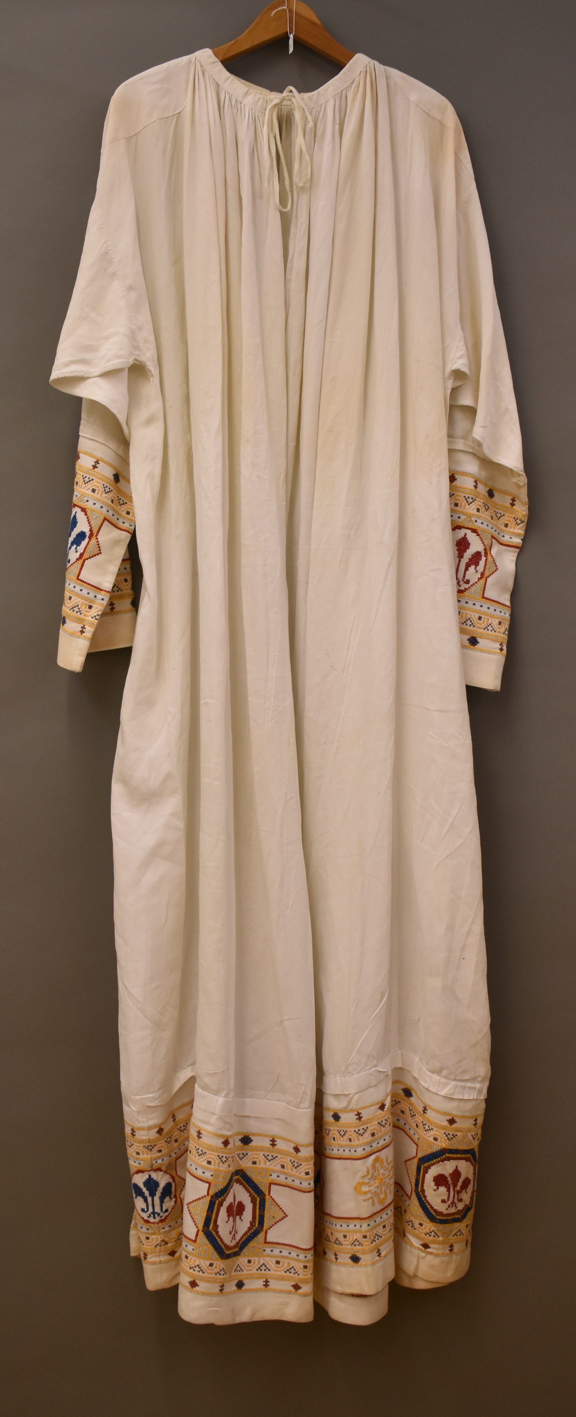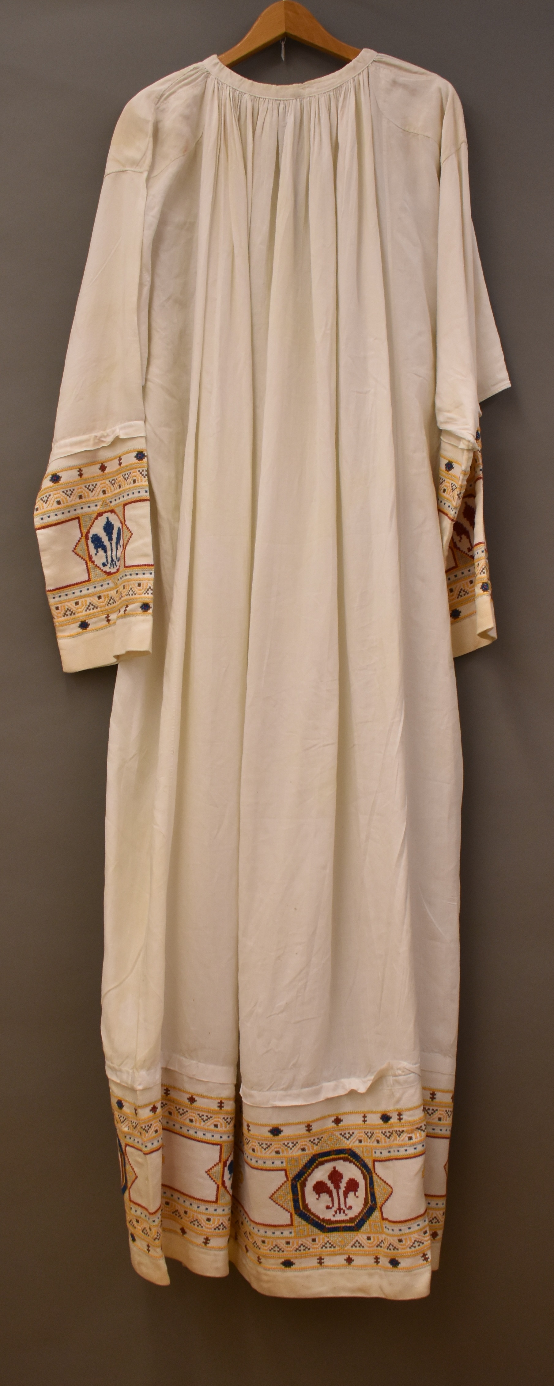 Albe met borduurwerk in kruisteek, IHS monogram, kruis, ster
