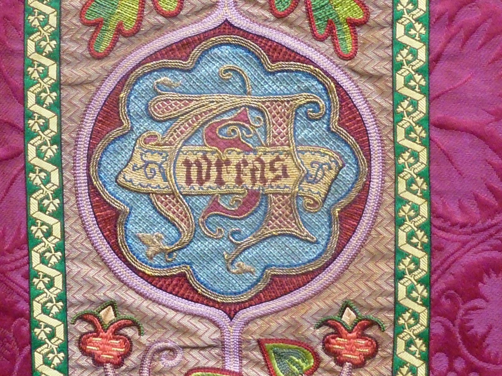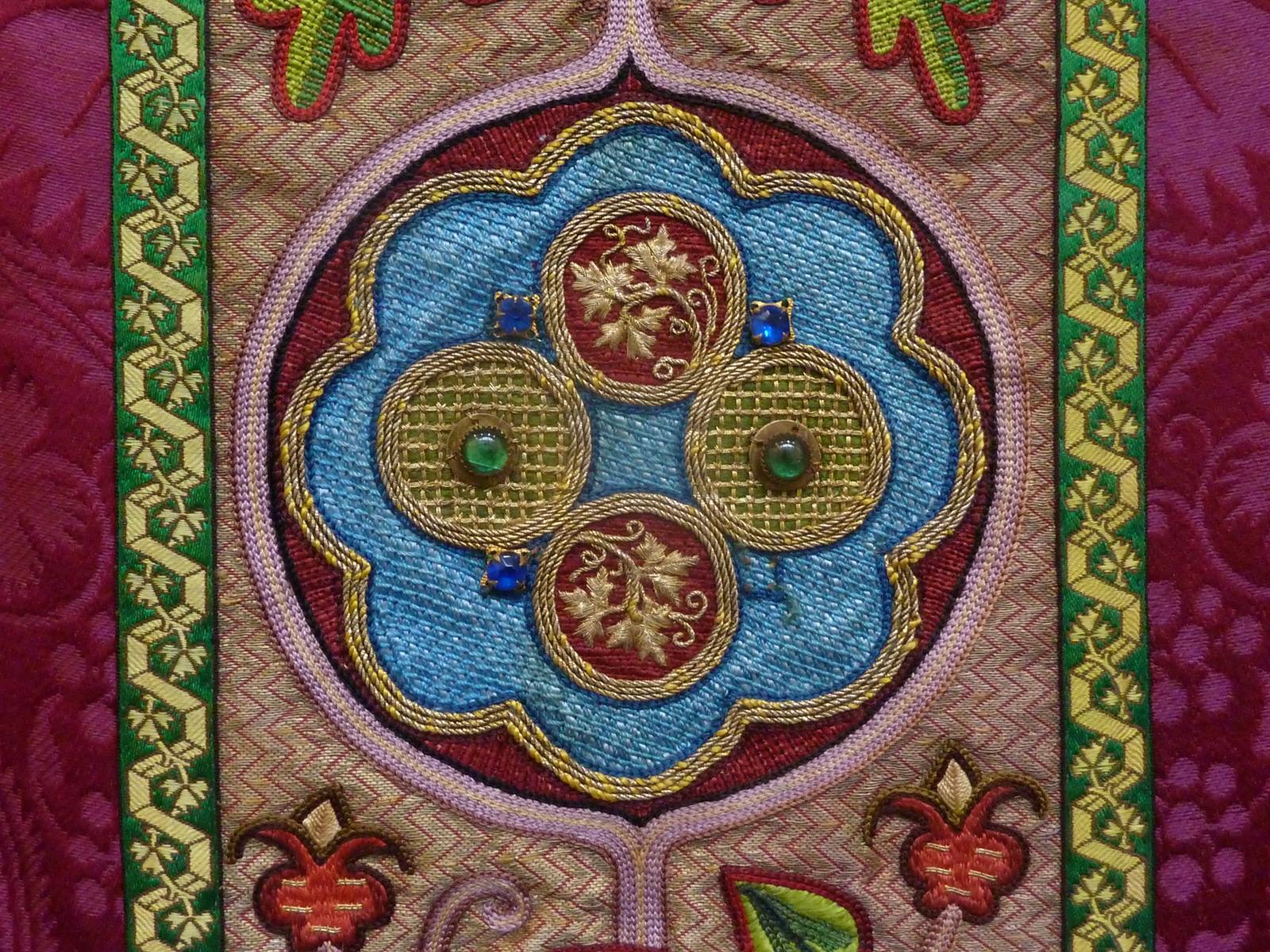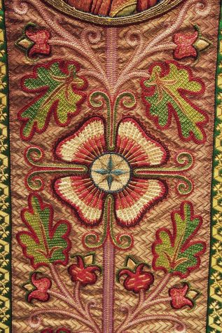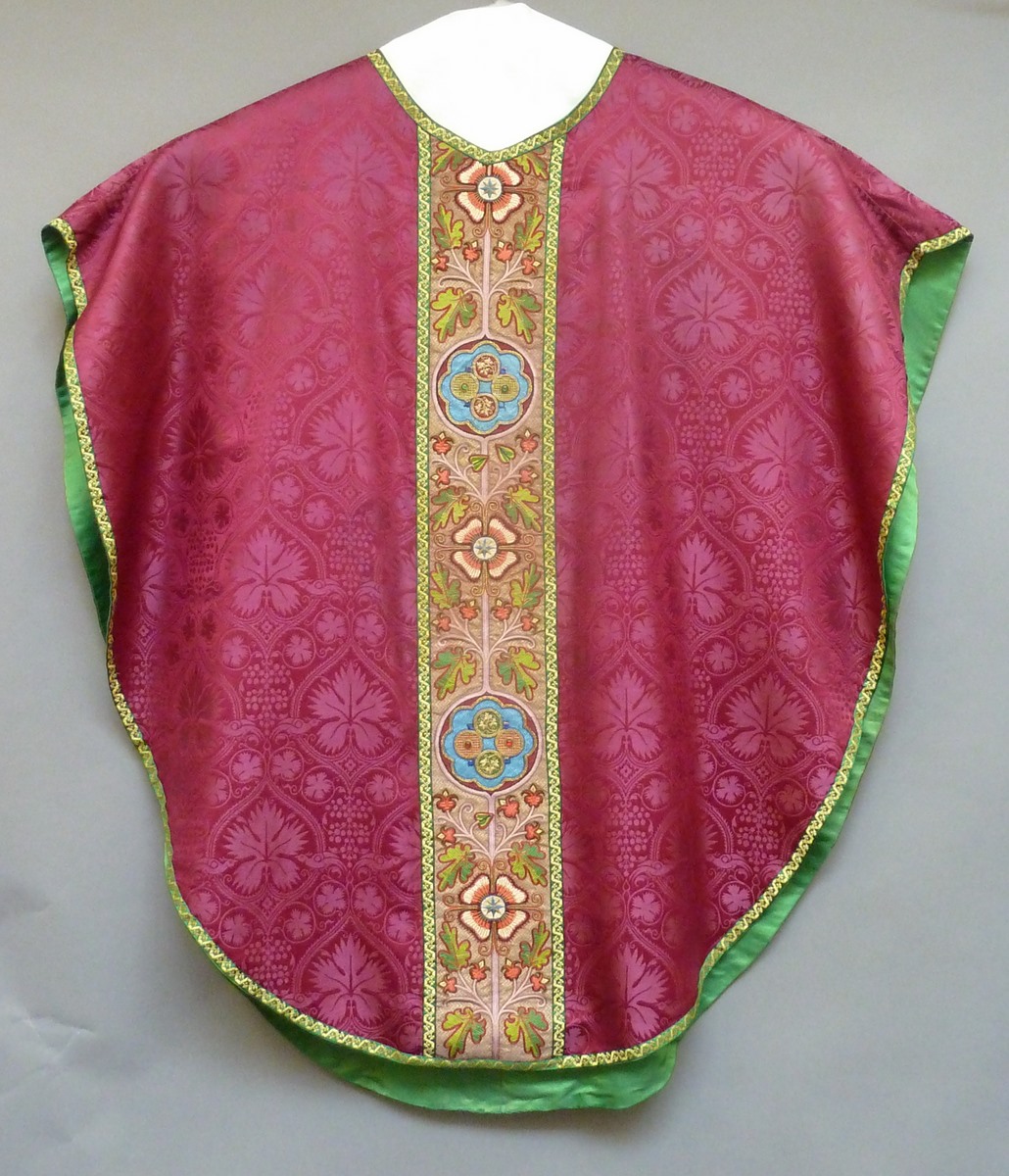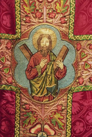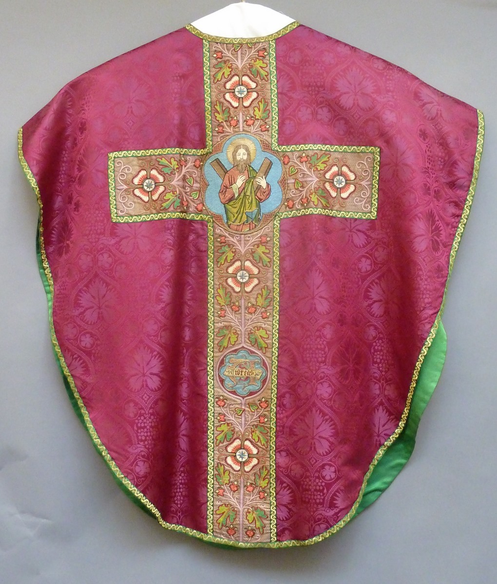 Paars kazuifel met zespas met de H. Andreas en met passiebloemen