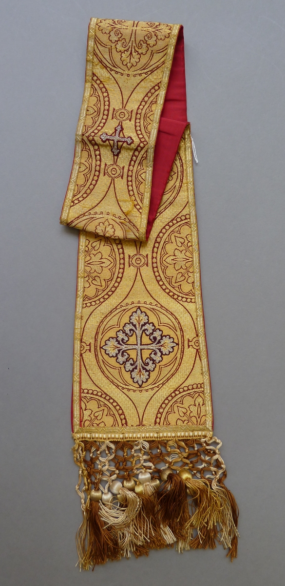 Goudkleurige manipel met rode leliekruisen in vierpassen, leliekruisen van zilverdraad
