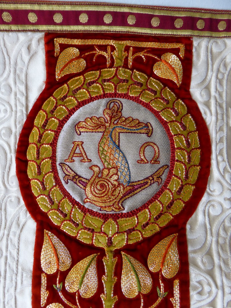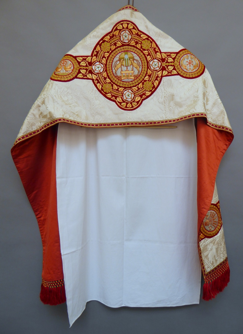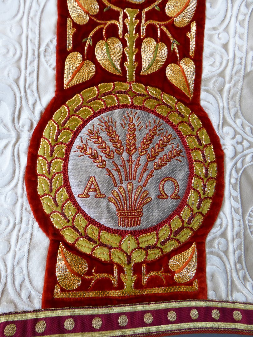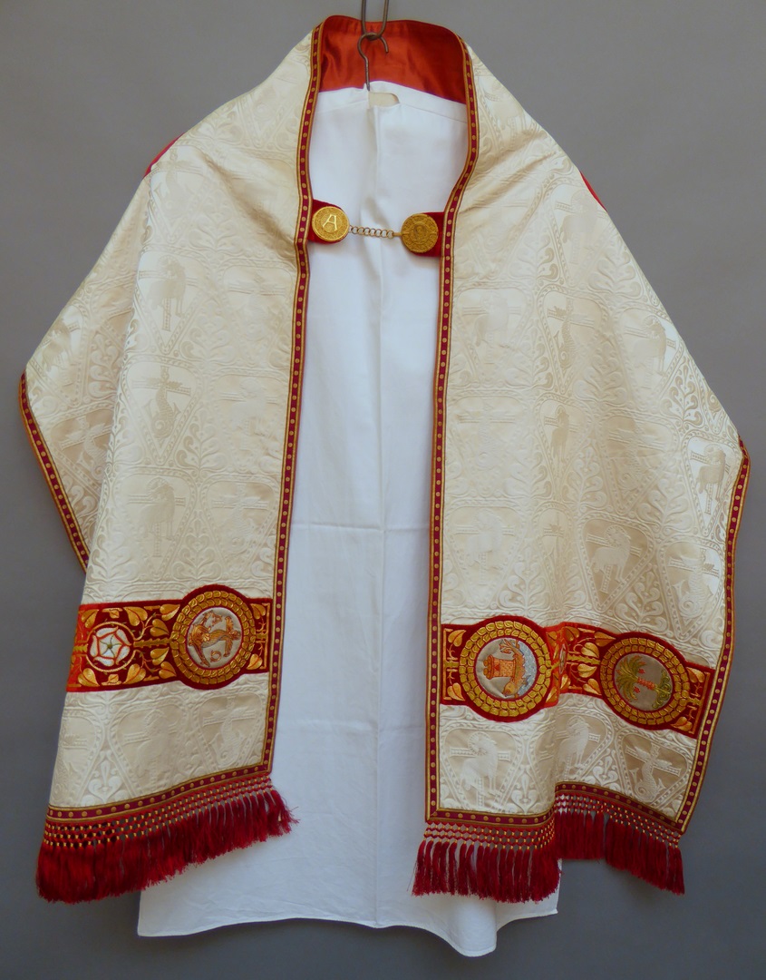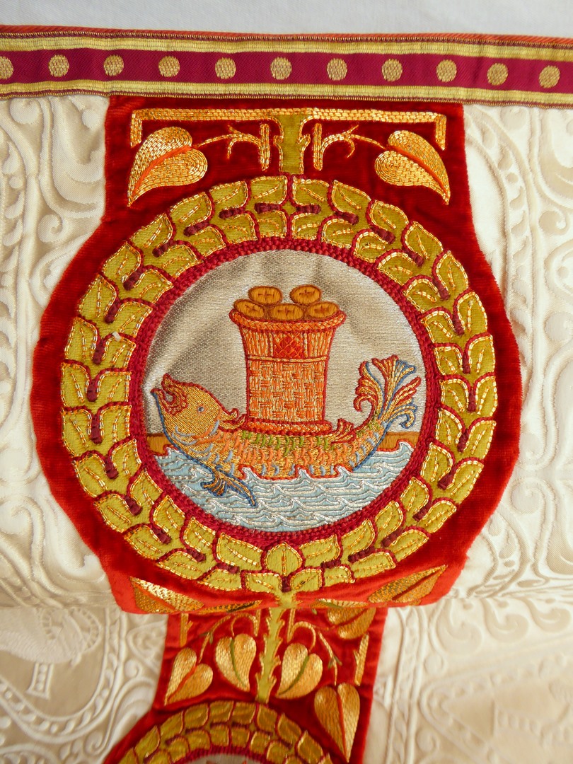 Wit schoudervelum met ingeweven vis en lam