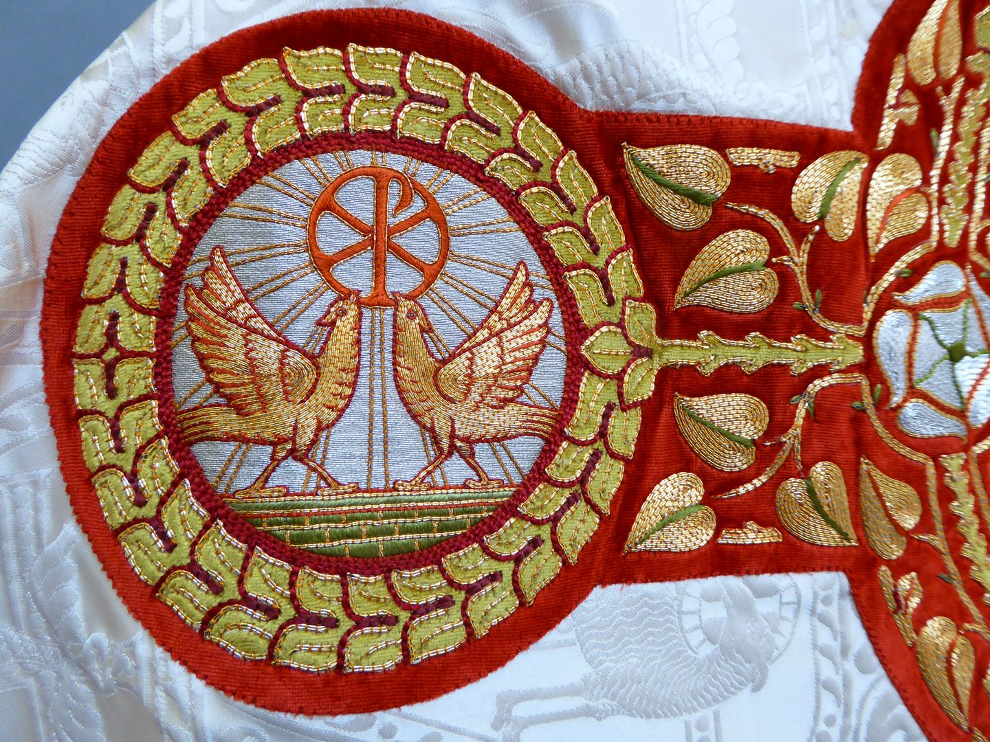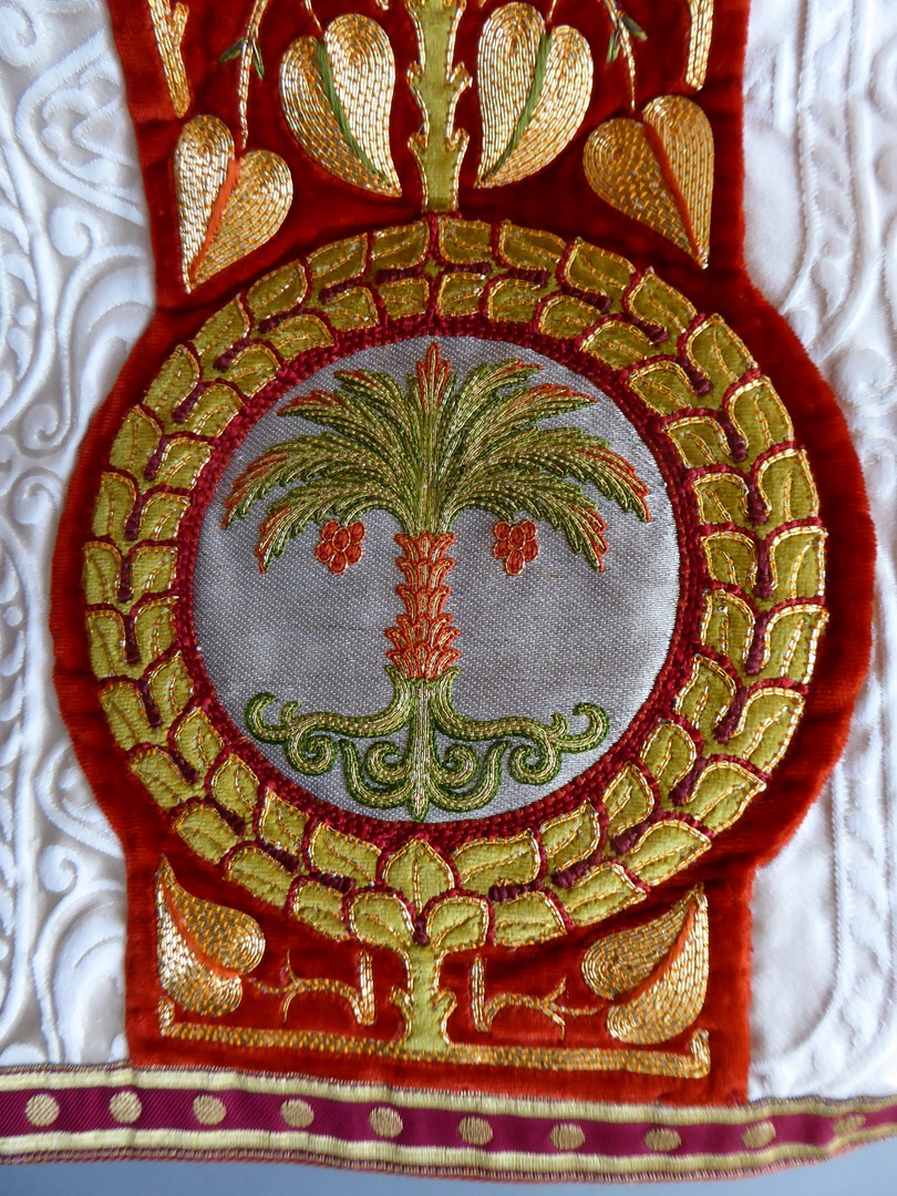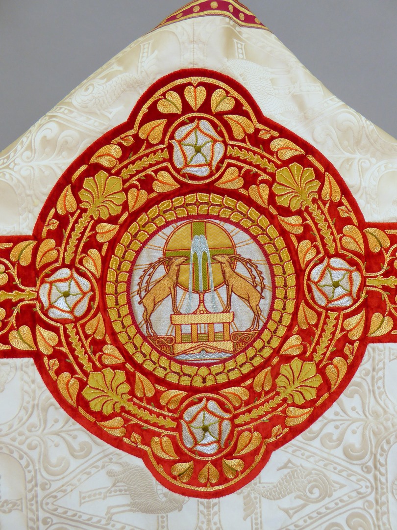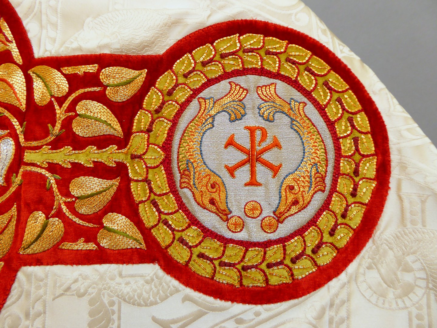 Wit schoudervelum met ingeweven vis en lam