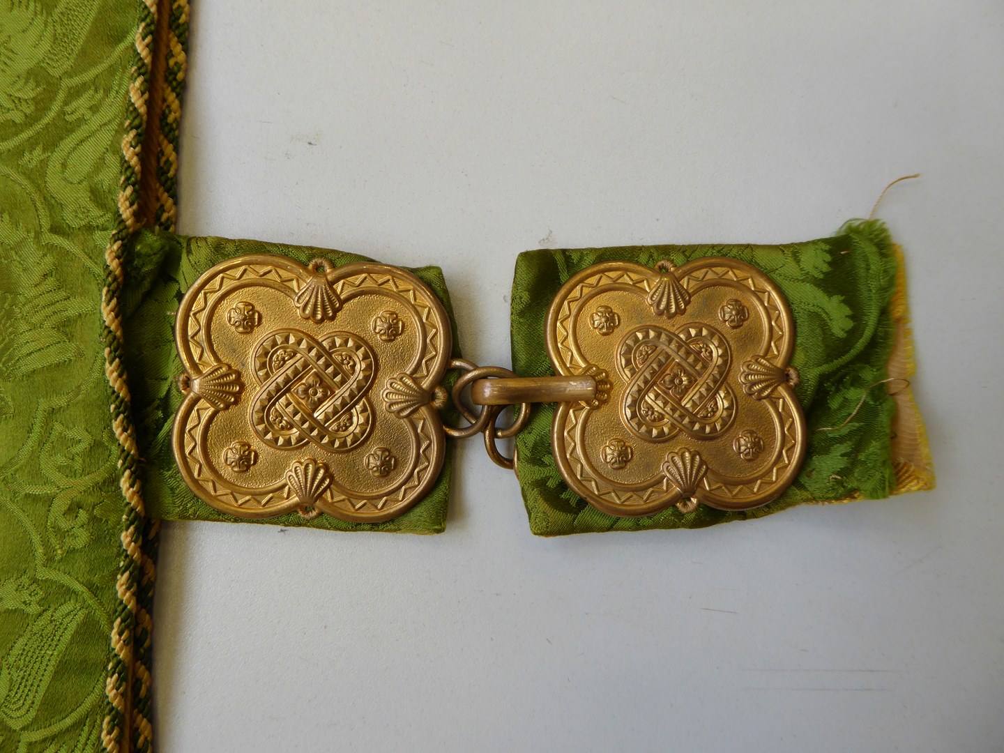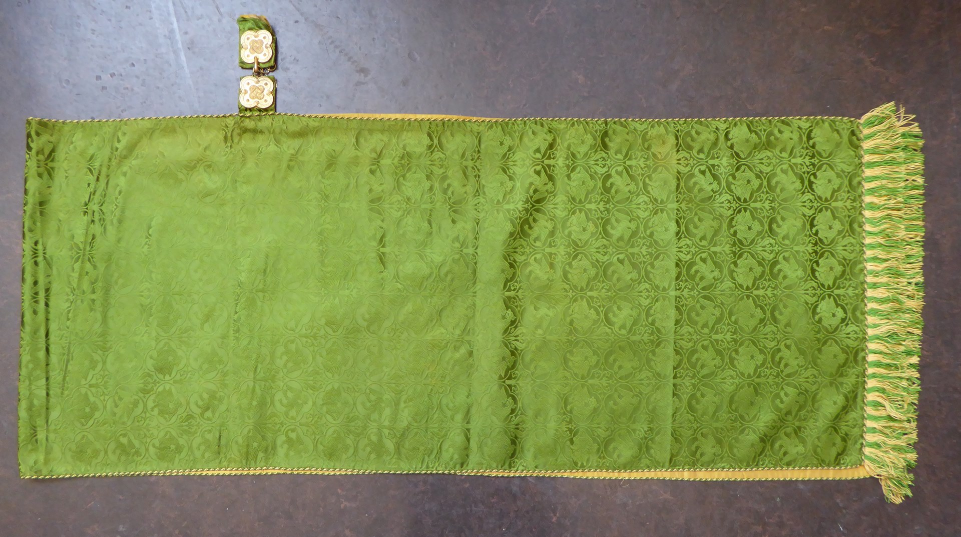 Groen schoudervelum met ingeweven griffioenen in vierpassen