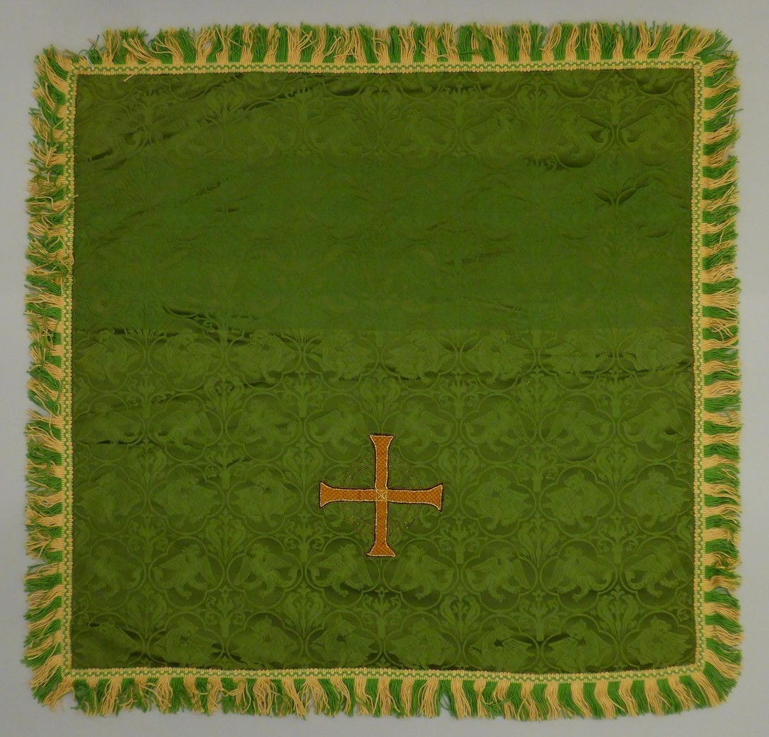 Groen kelkvelum met ingeweven griffioenen in vierpassen