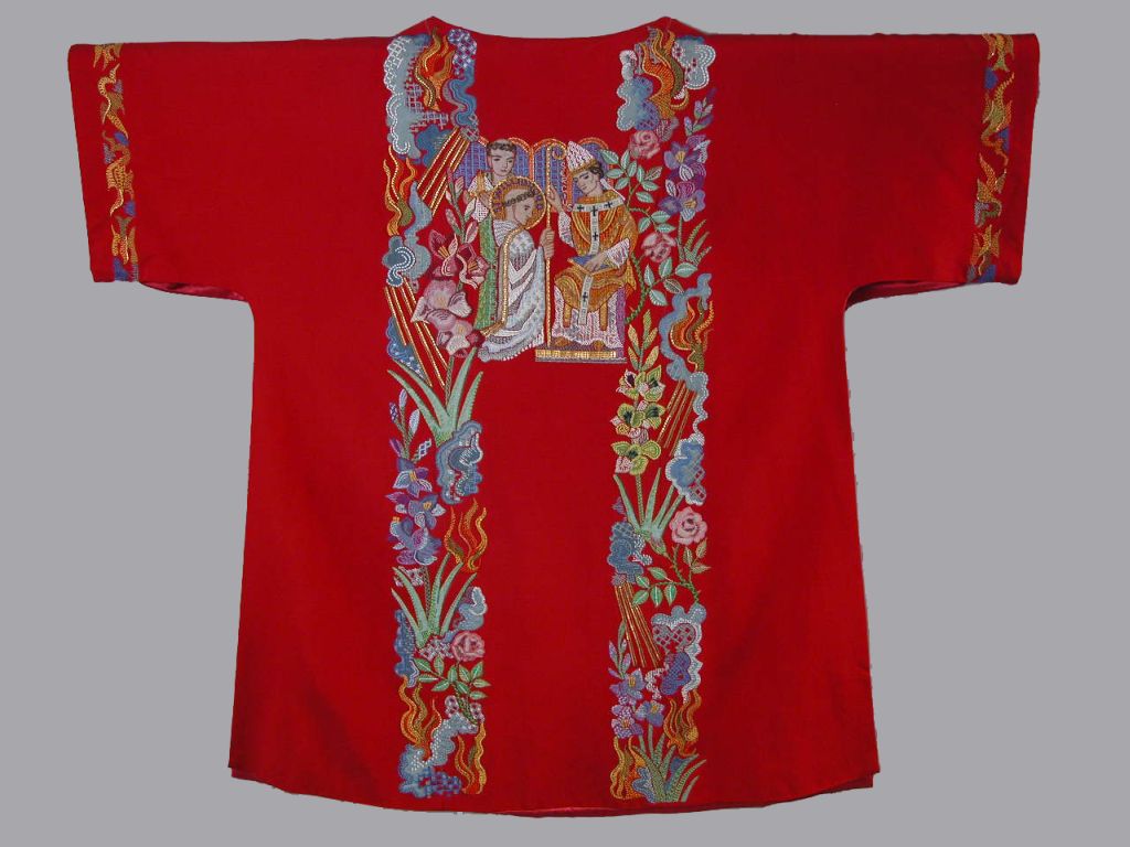 Rode dalmatiek met paus Sergius die H. Willibrordus wijdt en Petrus met het schip der kerk