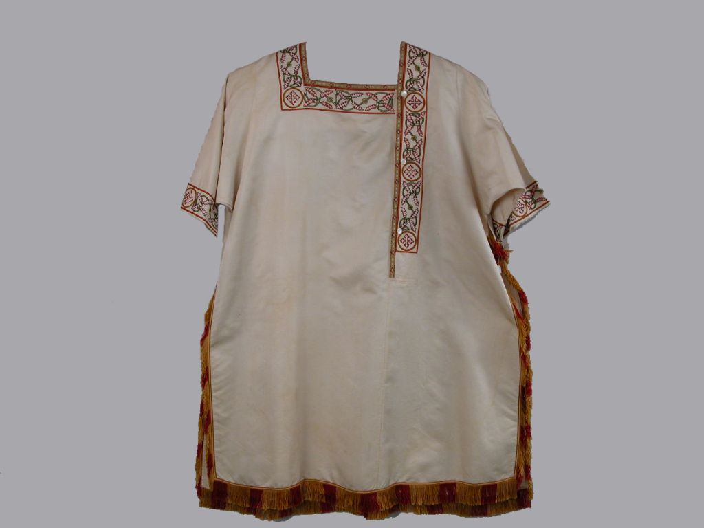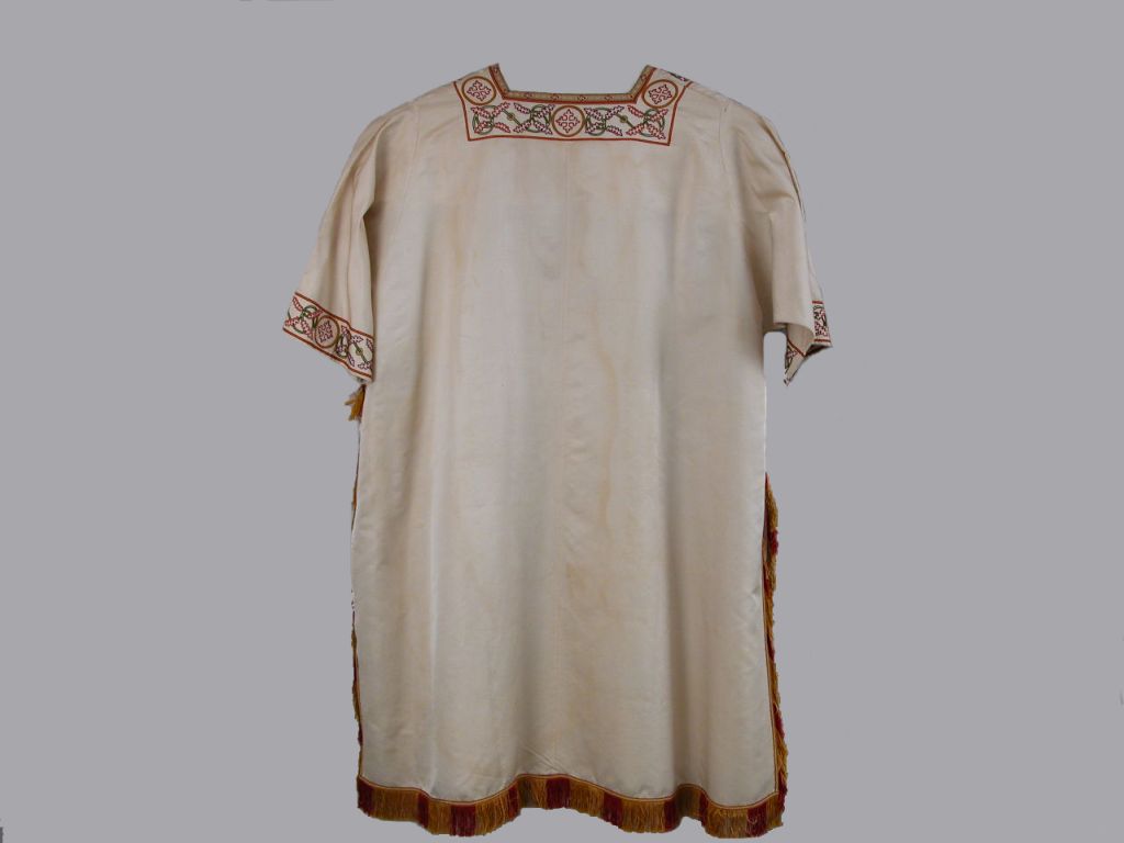 Witte dalmatiek met rood-groen borduurwerk en franje