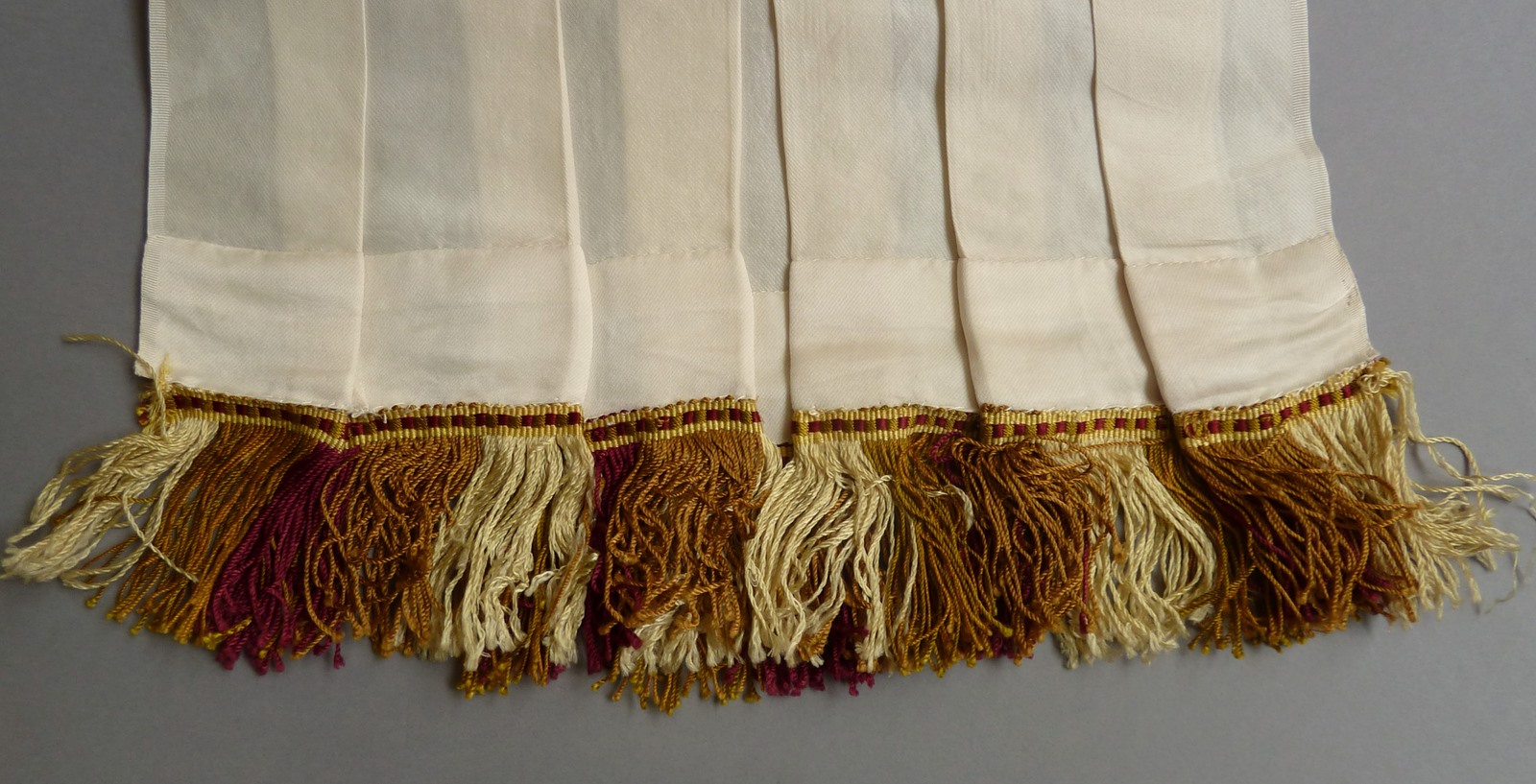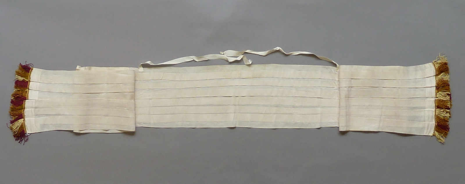 Wit schoudervelum met veelkleurige franje bestemd voor mijter- en stafdrager van aartsbisschop