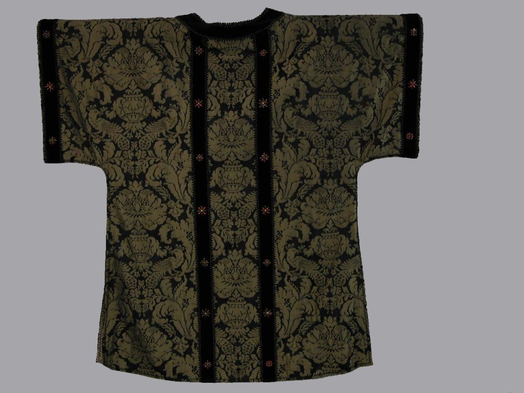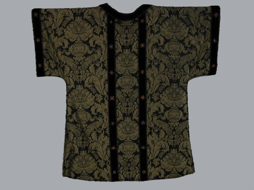 Zwarte dalmatiek met ingeweven goudkleurige vogels en ranken