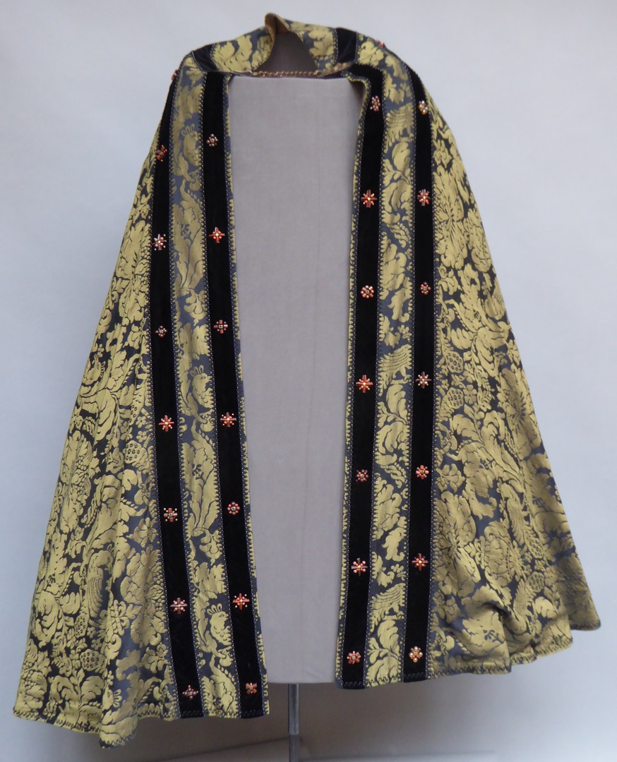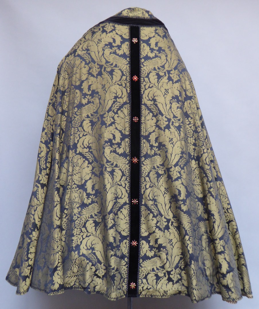 Zwarte koorkap met ingeweven goudkleurige vogels en ranken