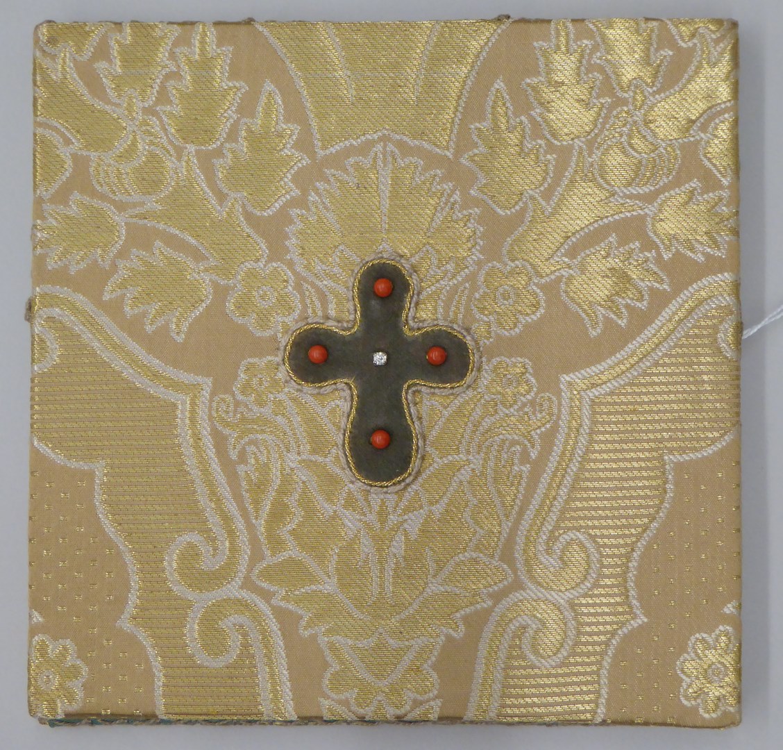 Goudkleurige beurs met ingeweven granaatappelmotief en grijs kruisje