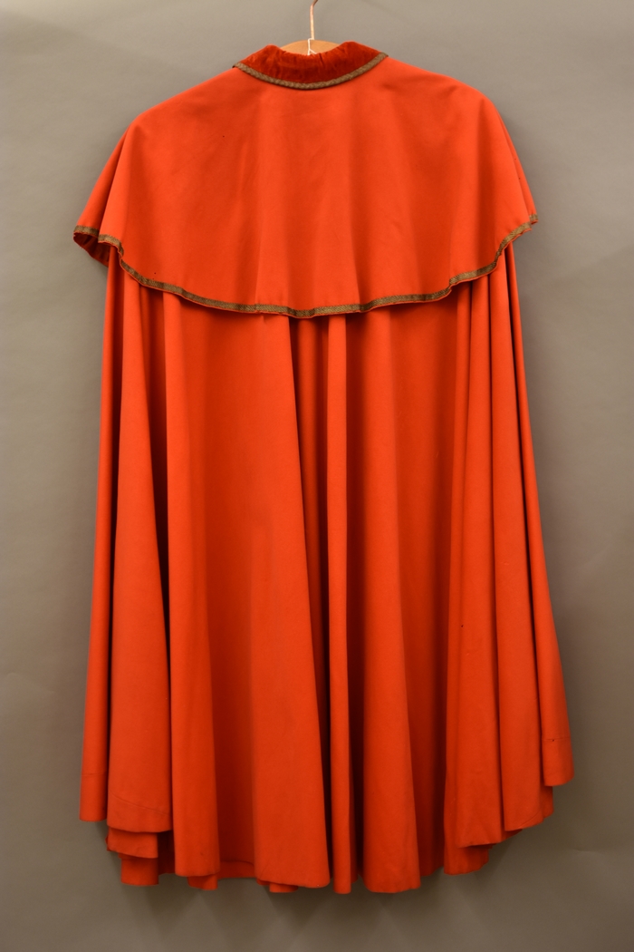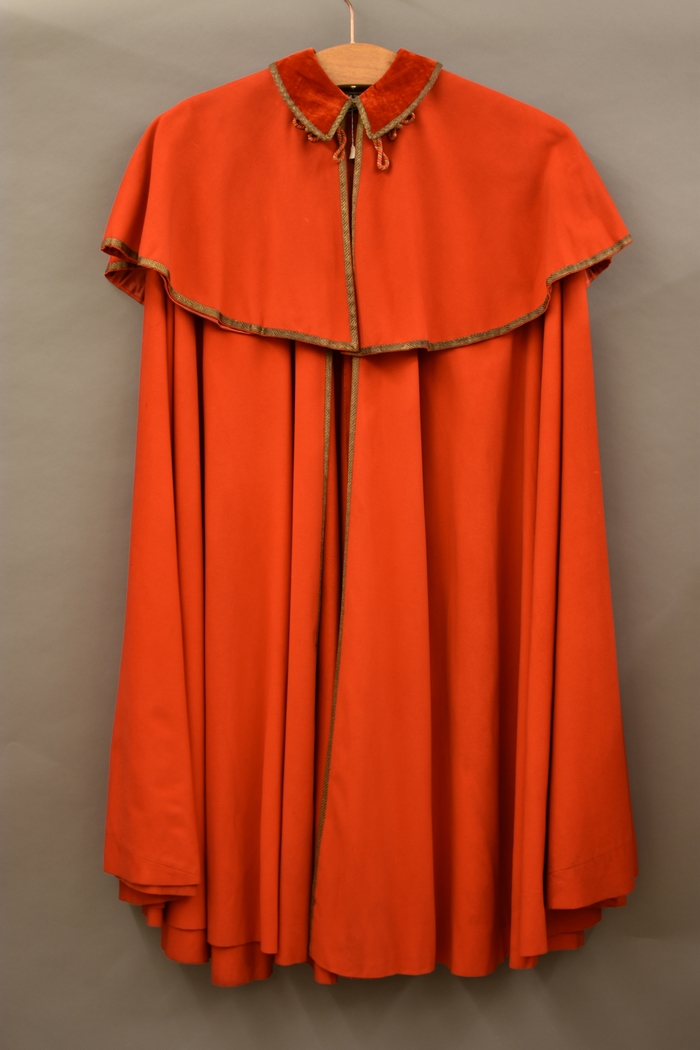 Rode wintermantel van kardinaal Johannes de Jong met pelerine en kraag, afgezet met goudgalon