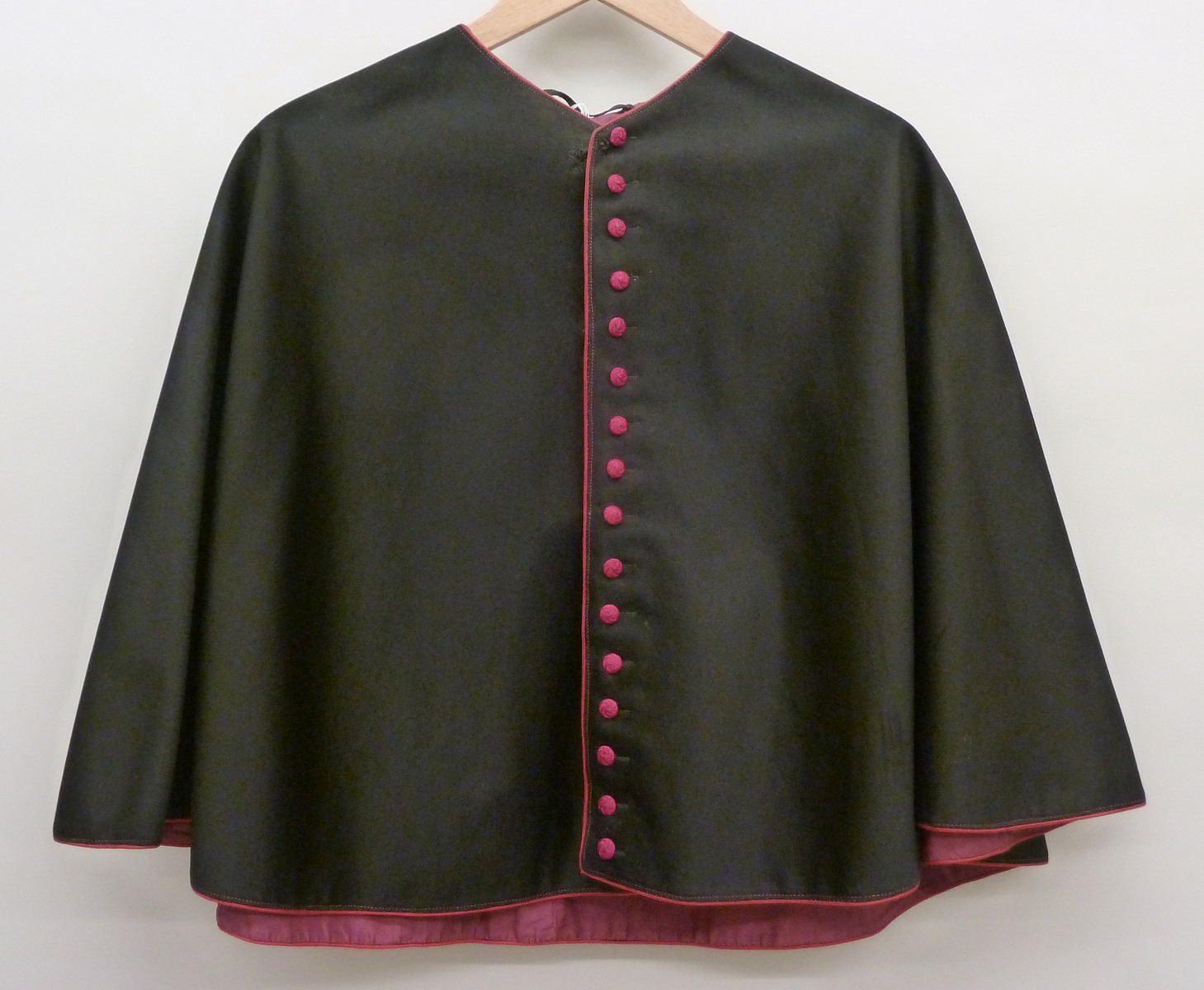 Zwarte kanunnikenmozetta met paarse knopen, biesje en voering