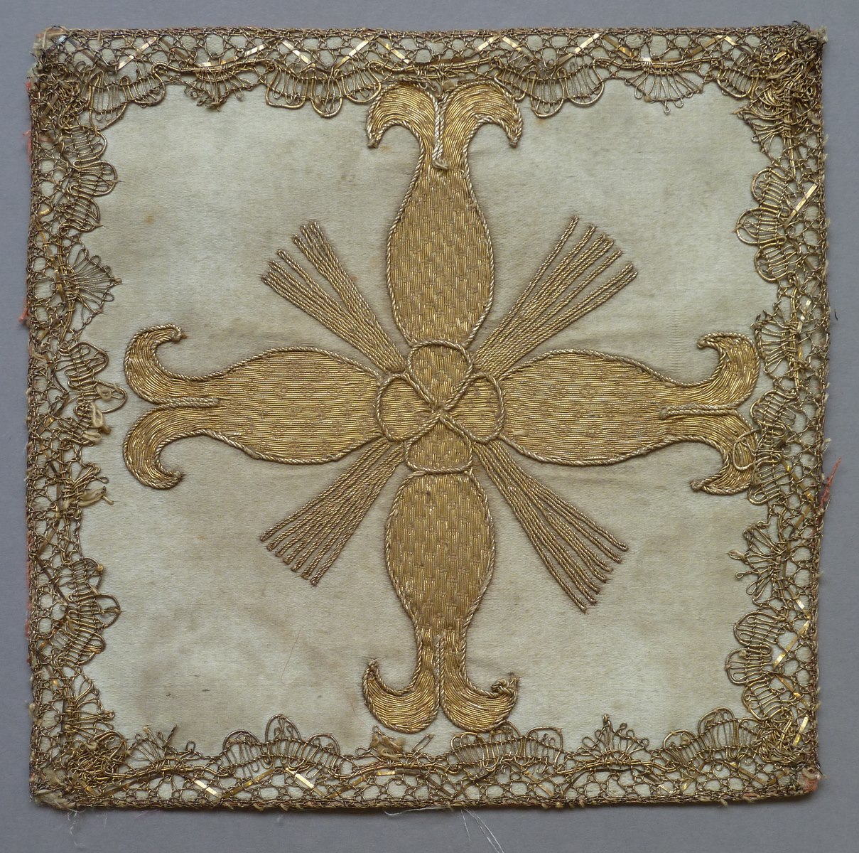 Witte bovenzijde van palla met gouddraad kruis