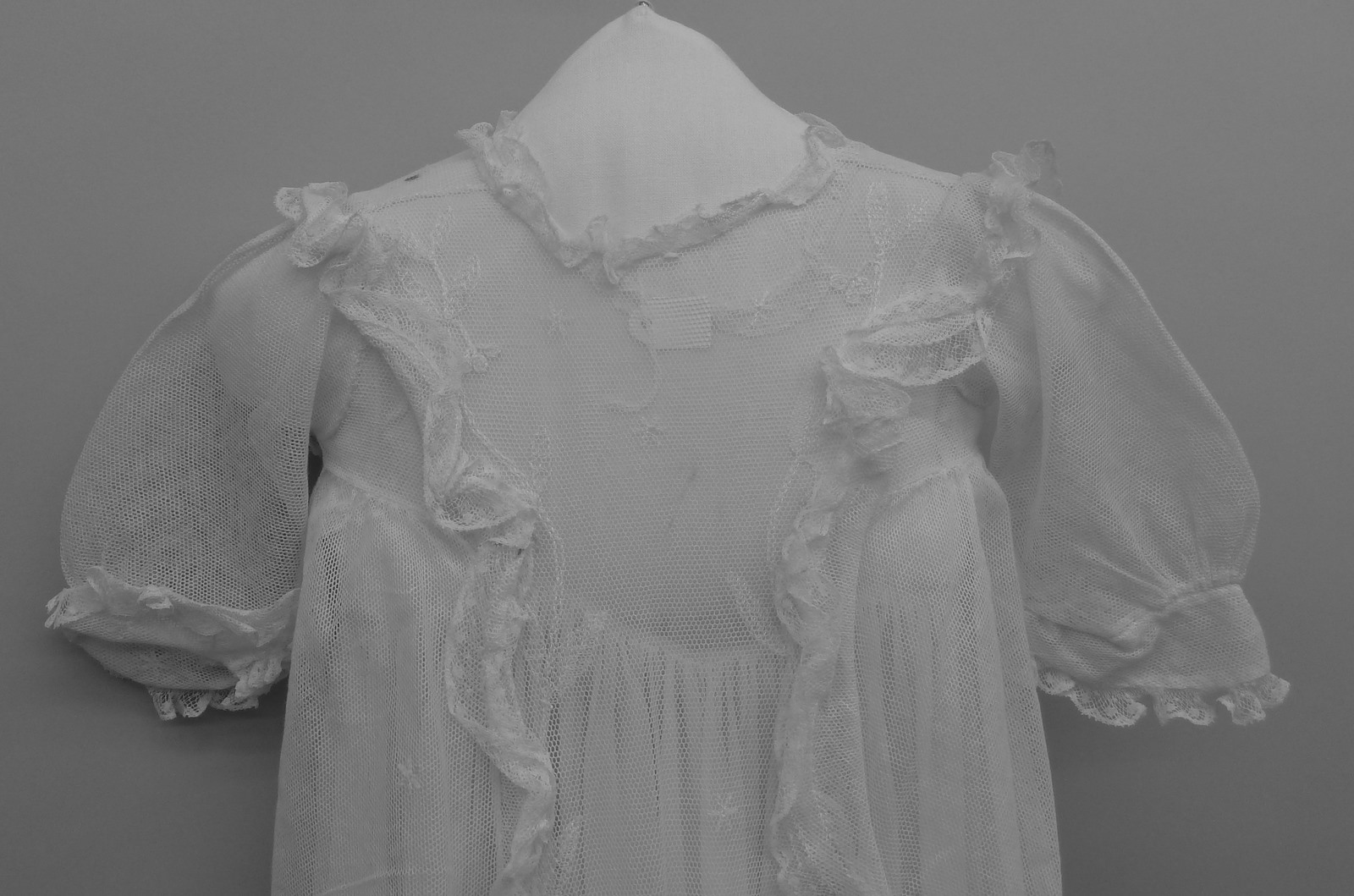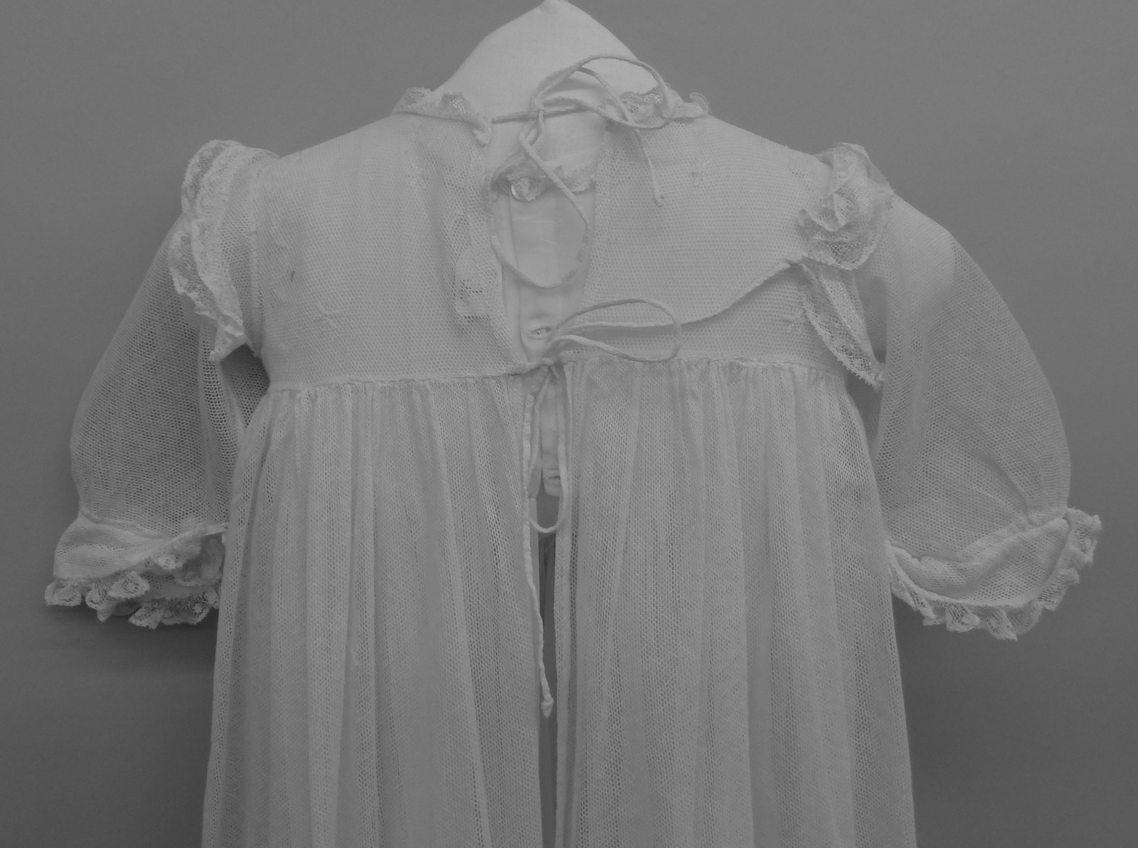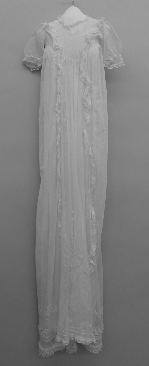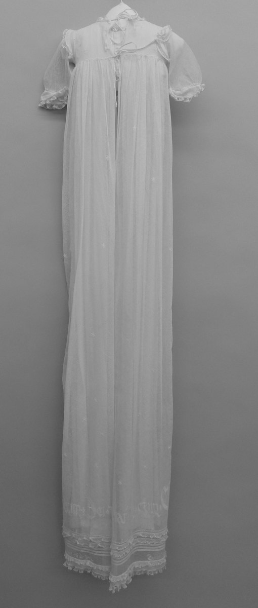Witte doopjurk met borduurwerk, doopspreuk en namen van dopelingen