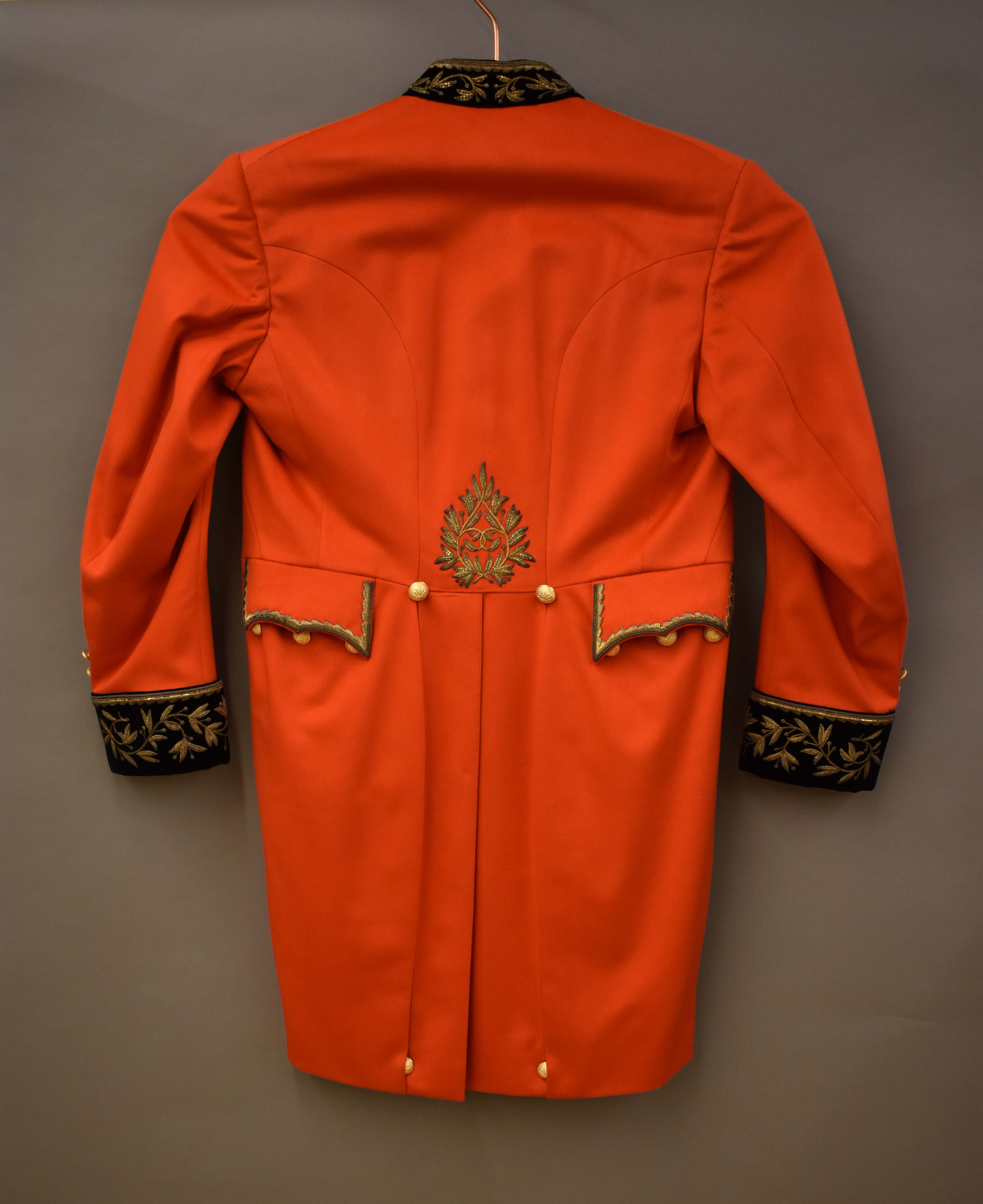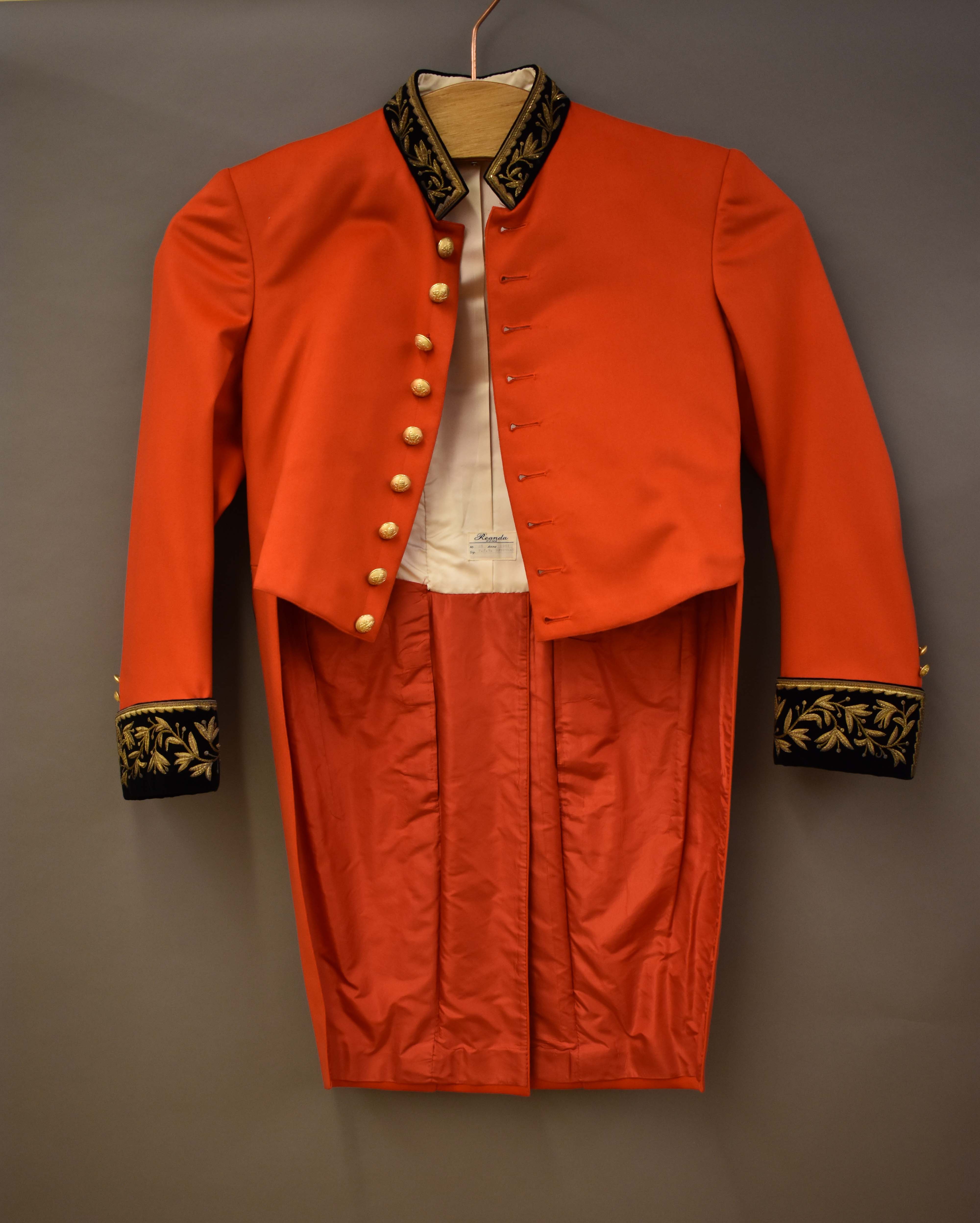 Erekamerheer van de paus: rode jas met zwarte kraag en manchetten met goudborduursel