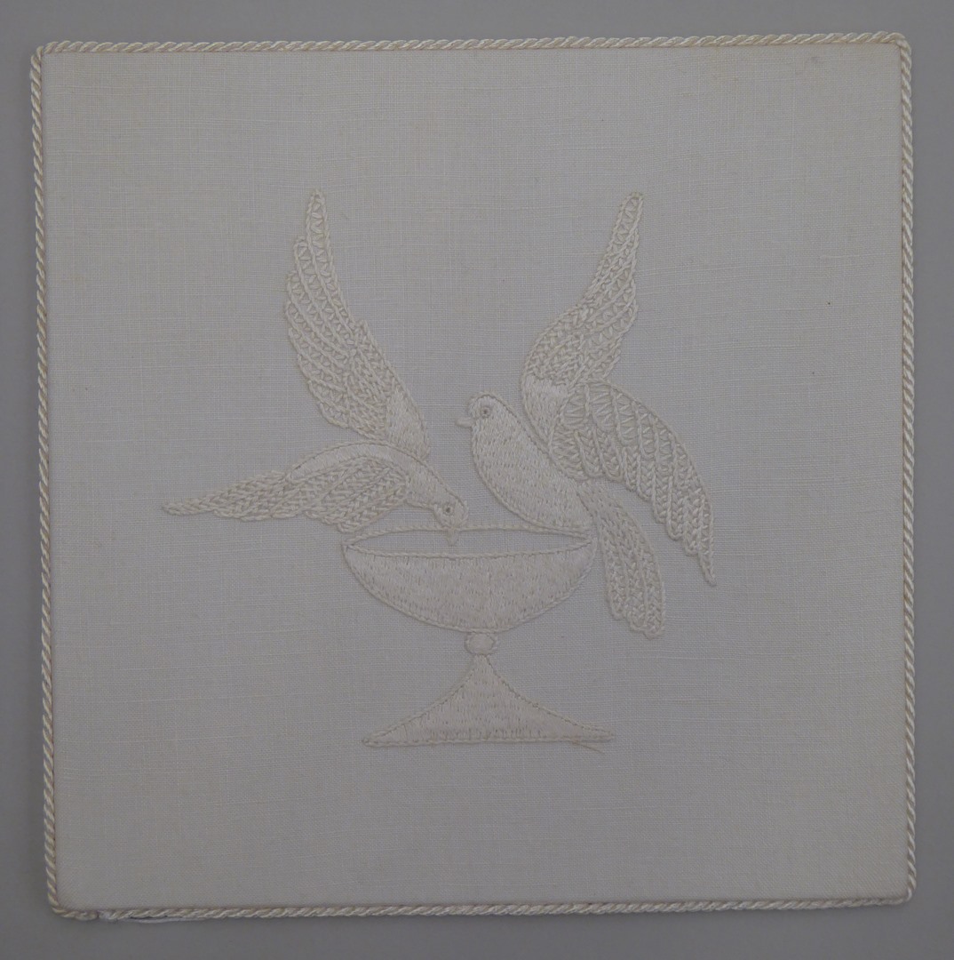 Witte palla met kelk en twee duiven