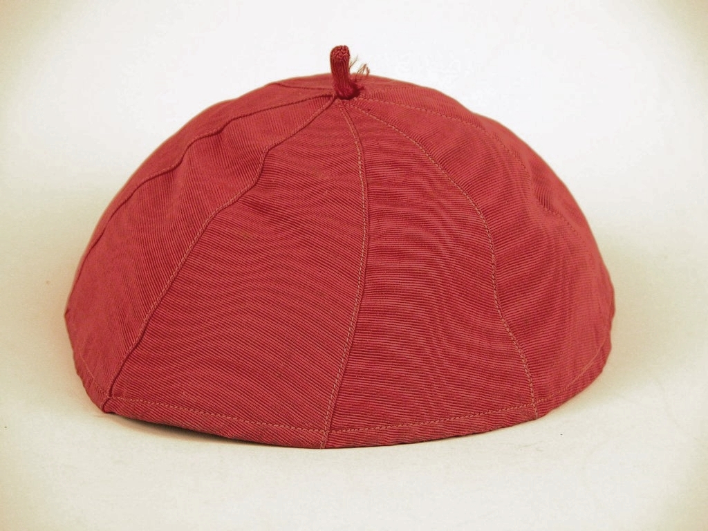 Kalotje van rode moiré-zijde behorend tot de zomerdracht van een kardinaal